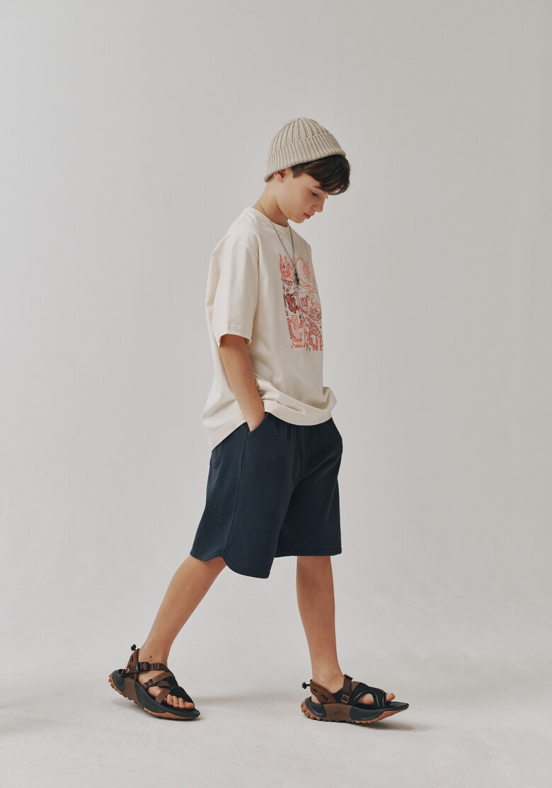 안정적인 하프 기장감으로 제안한 남녀 모두에게 코디하기 좋은 상품입니다.?