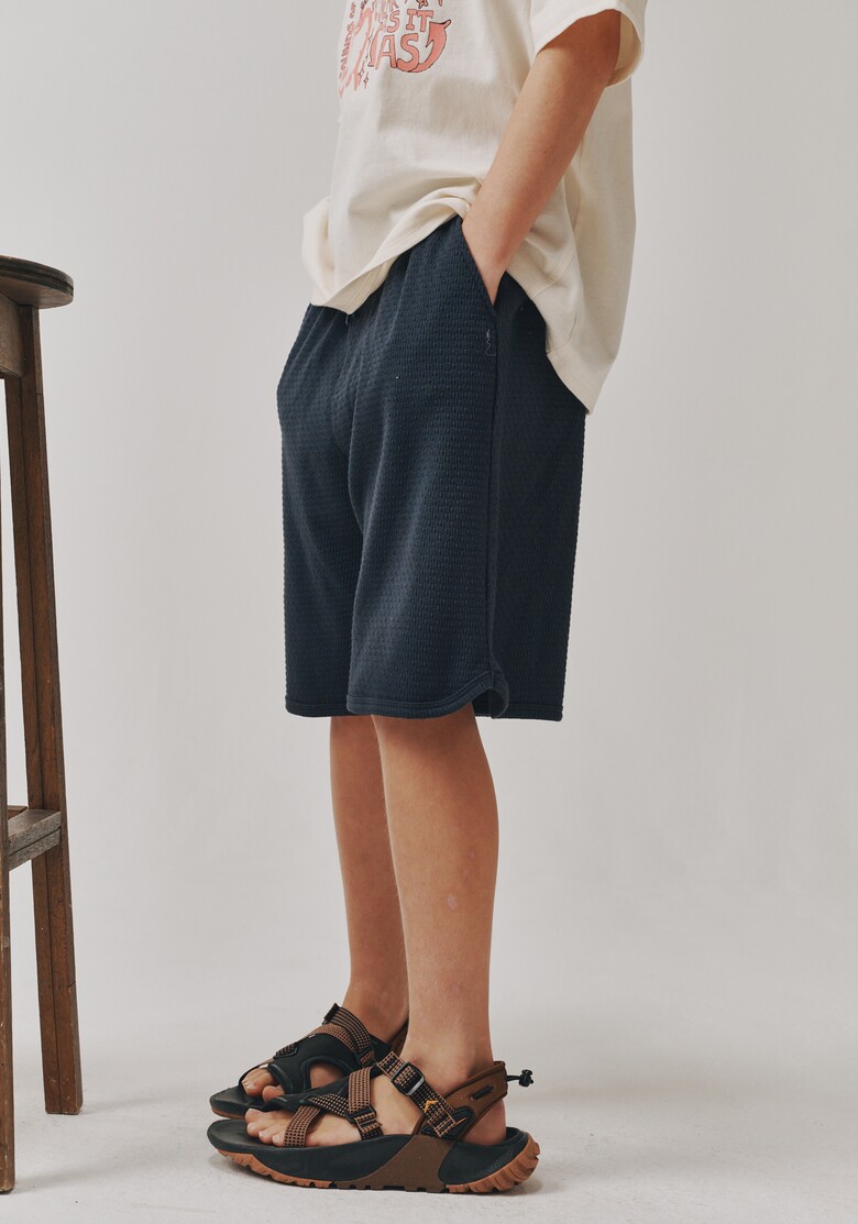 딥한 네이비 컬러 와플 져지 팬츠입니다.