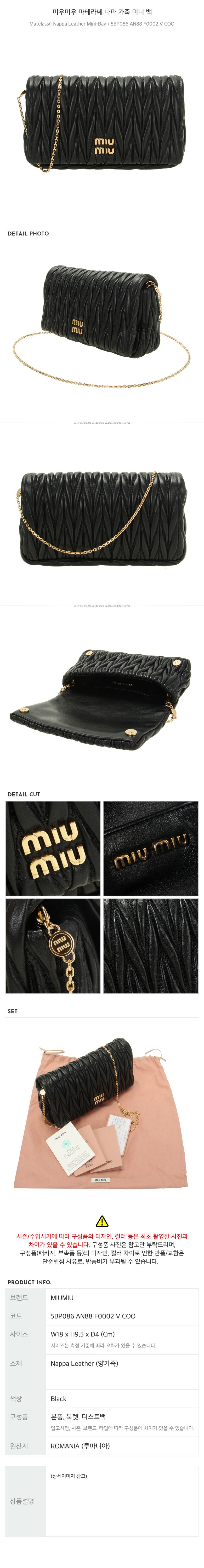 - #리본즈코리아 #5BP086AN88F0002VCOO #[명품] #미우미우 #마테라쎄 #나파 #가죽 #미니 #백 #/ #5BP086 #AN88 #F0002 #V #COO #여성 #가방/핸드백 #숄더백/호보백 #숄더백