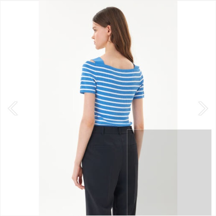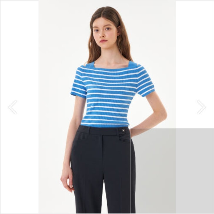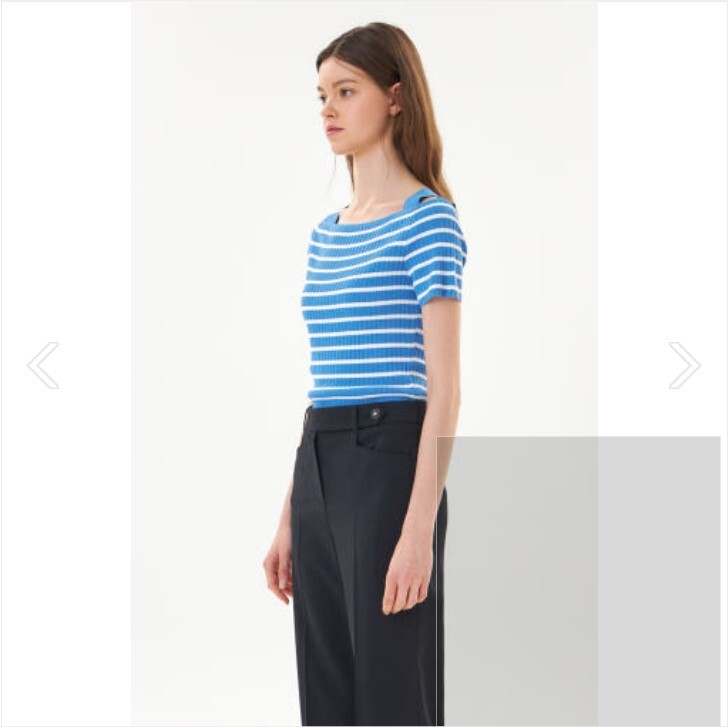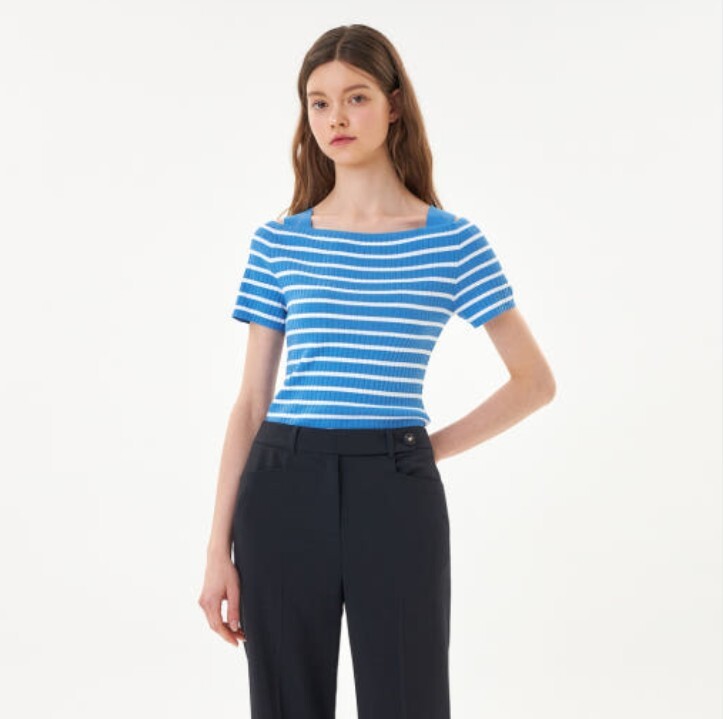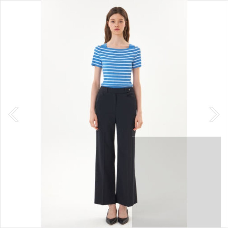 스트라이프 패턴과 세미 크롭 기장으로 캐주얼하고 데일리한 연출이 가능합니다.