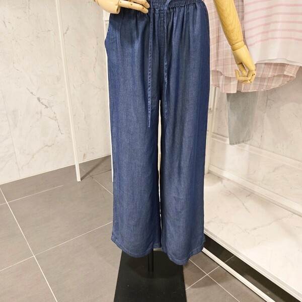 F5BPT013A_블루 밴딩 와이드 팬츠