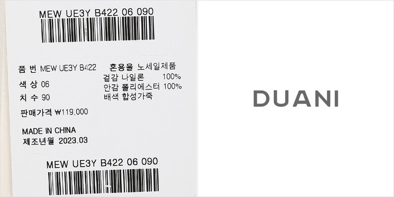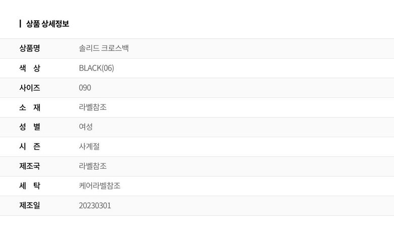 | 2. 소재 | 겉감:나일론100% 안감:폴리에스터100% 배색:합성가죽 |