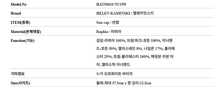 헬렌카민스키 HAT50610 NUOW 로잘리 누가 오프화이트 바이저 썬캡