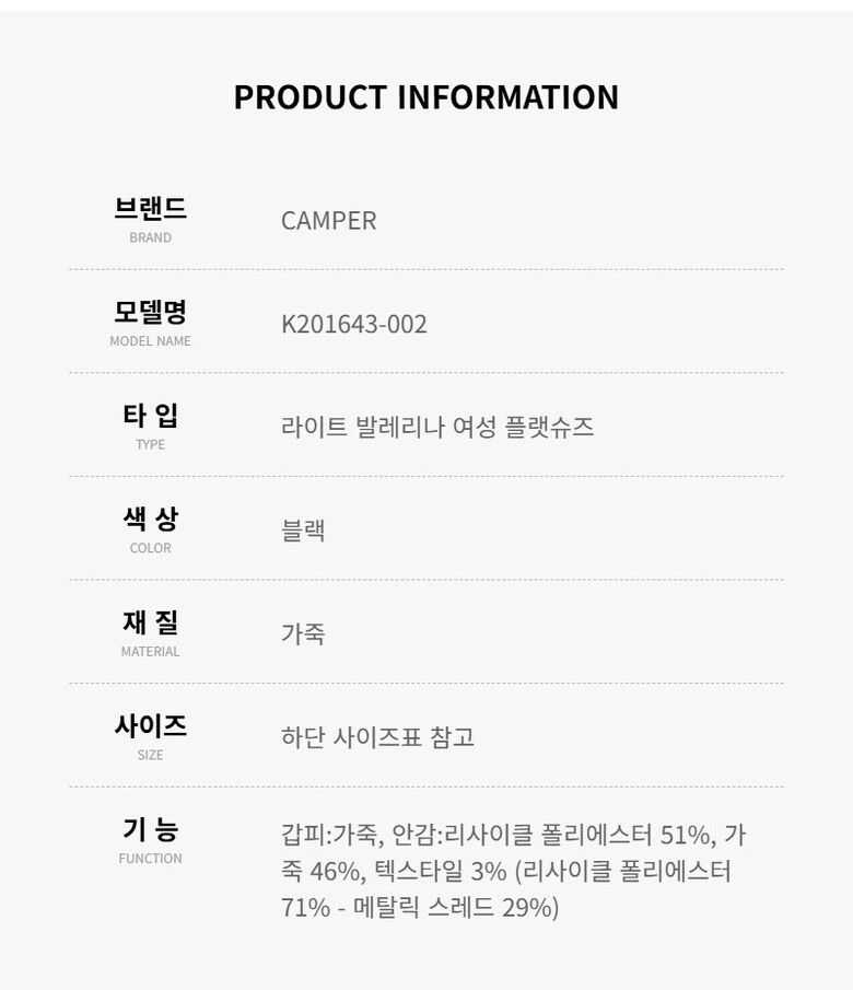 | 4. 제조사 | 캠퍼/MACHO-병행수입 |