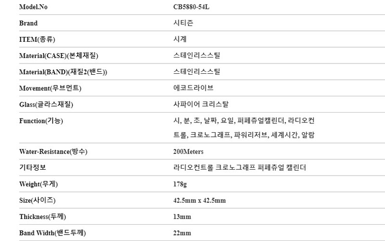 | 7. 주요 사양 | 스테인리스스틸 시계 에코드라이브 |