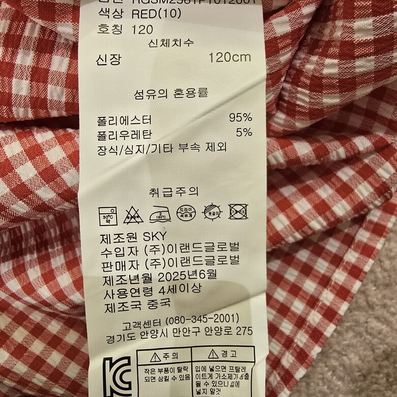 | 1. 제품 소재 (섬유의 조성 또는 혼용률을 백분율로 표시, 기능성인 경우 성적서 또는 허가서) | 상품상세참조 |