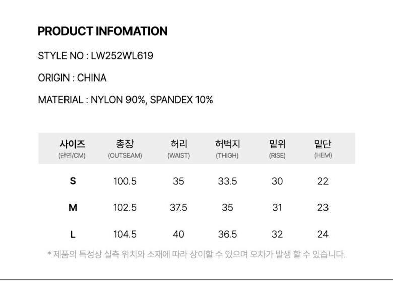 | 1. 제품 소재 (섬유의 조성 또는 혼용률을 백분율로 표시, 기능성인 경우 성적서 또는 허가서) | 겉감:나일론 90%, 폴리우레탄 10% |
