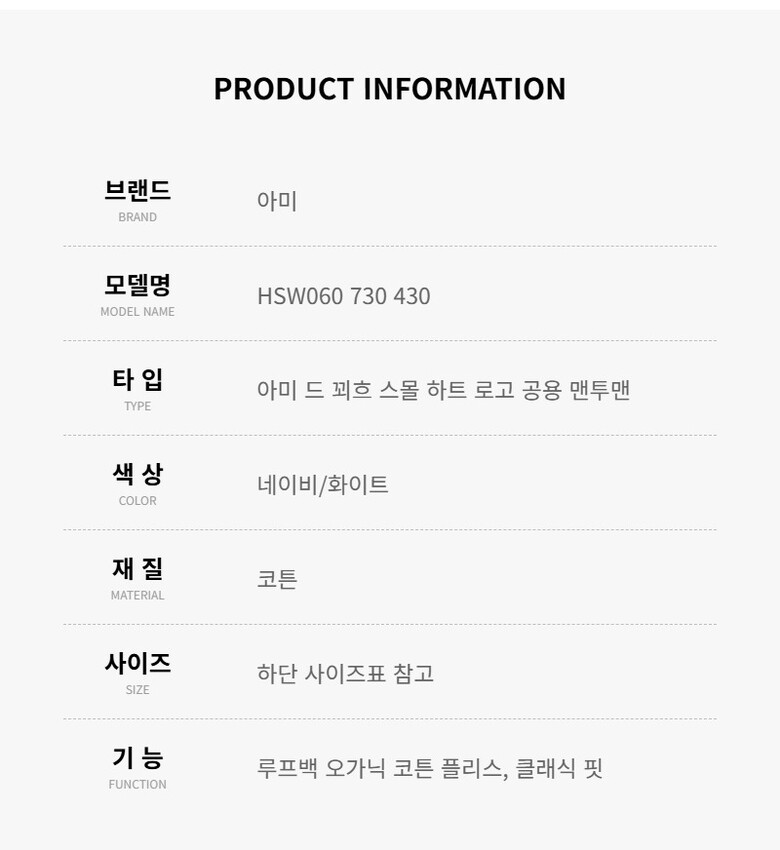 [명품] HSW060 730 430 공용 맨투맨