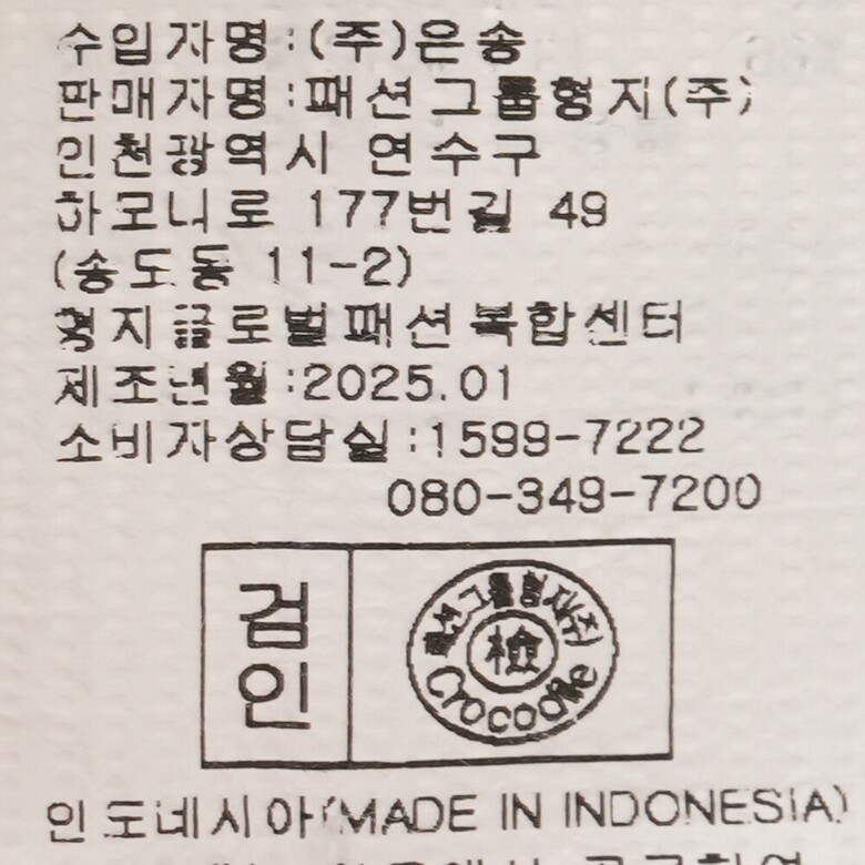 | 1. 제품 소재 (섬유의 조성 또는 혼용률을 백분율로 표시, 기능성인 경우 성적서 또는 허가서) | 상품상세참조 |