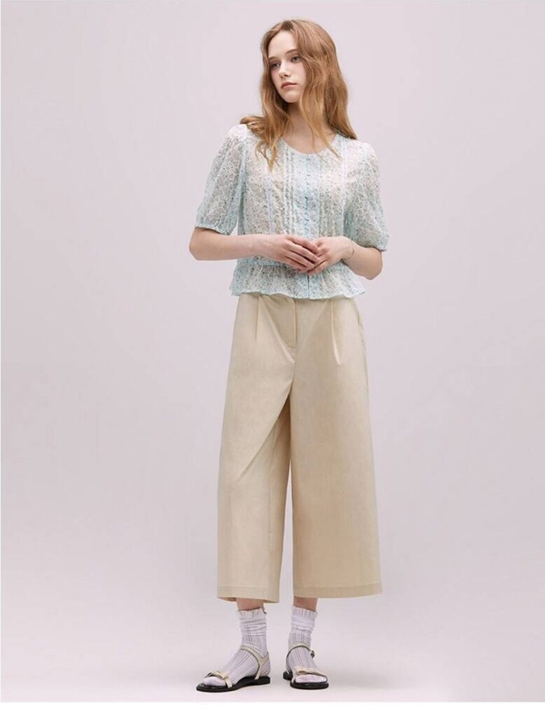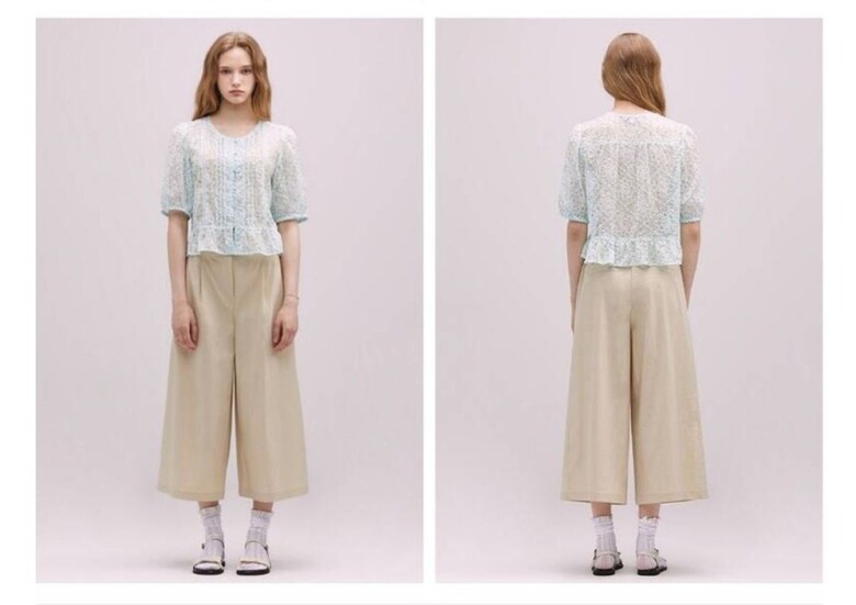 레이스와 핀턱 디테일 포인트를 준 여성스러운 느낌의 크롭 기장의