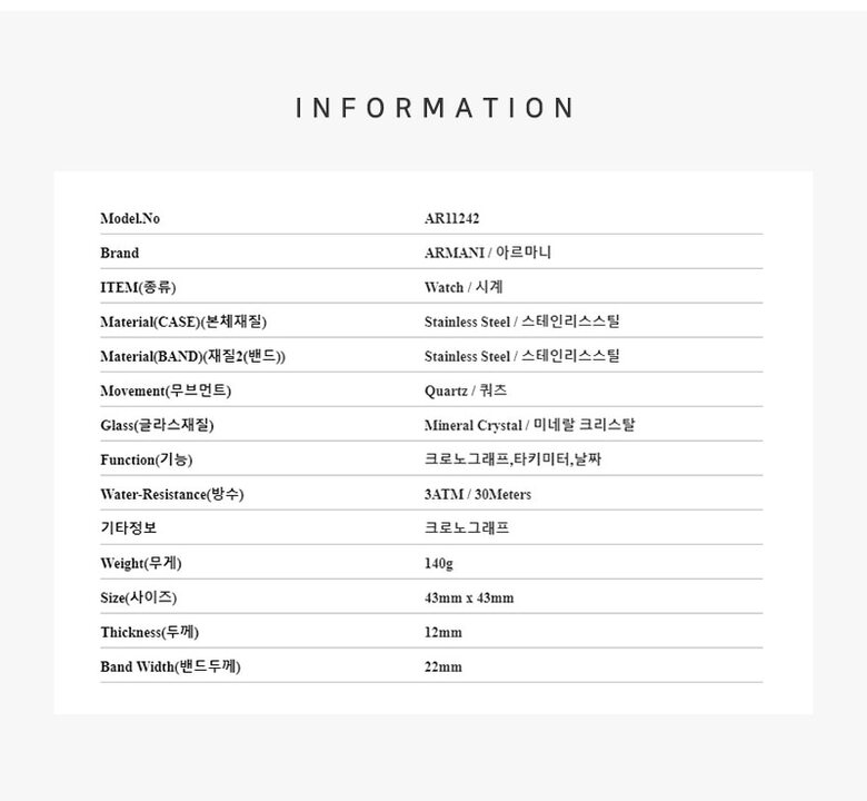 아르마니 시계 AR11242 마리오 남성메탈시계 알마니시계 당일발송