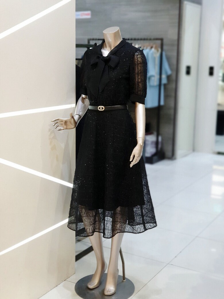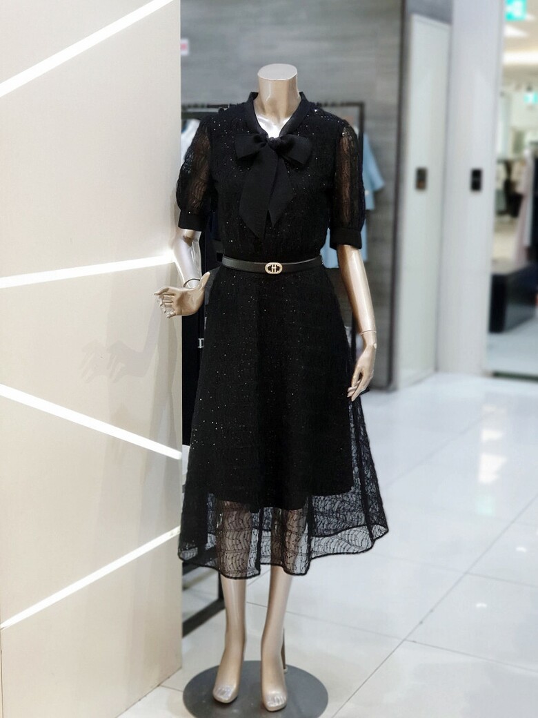 스팽글 타이 플레어 원피스 MYBAWO5350