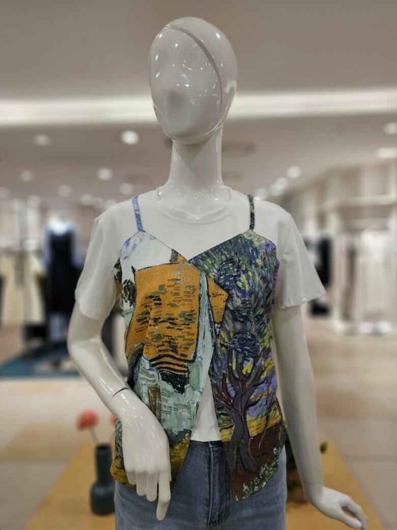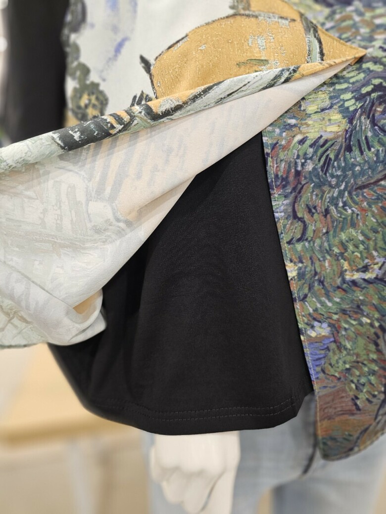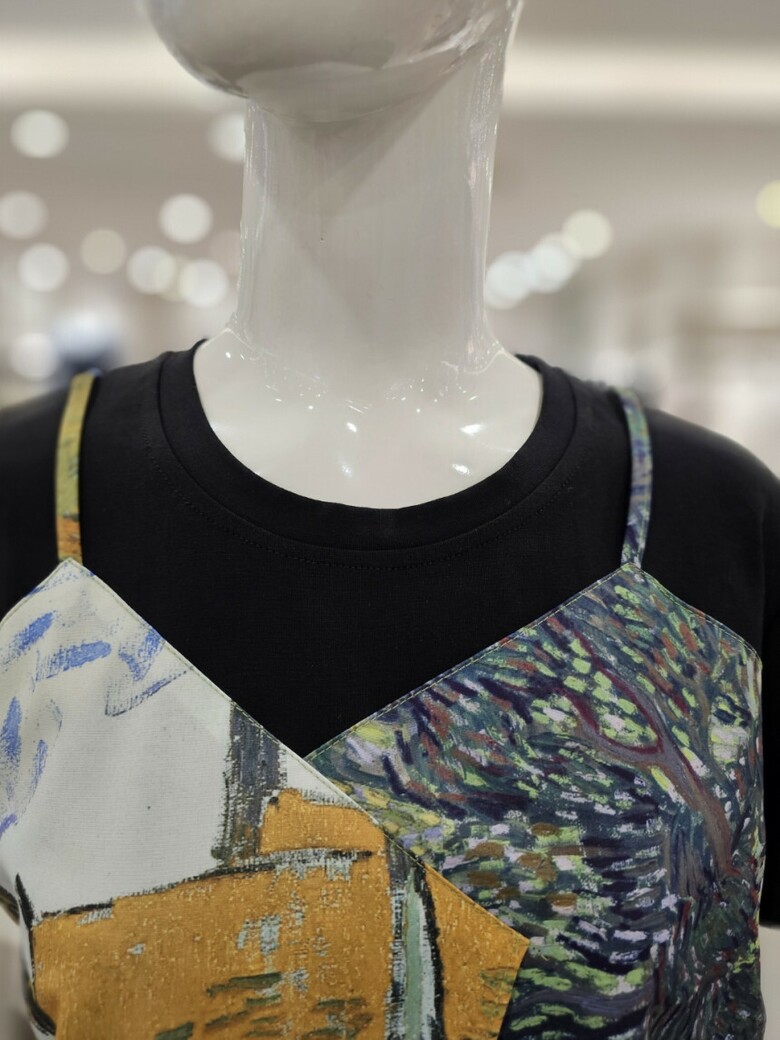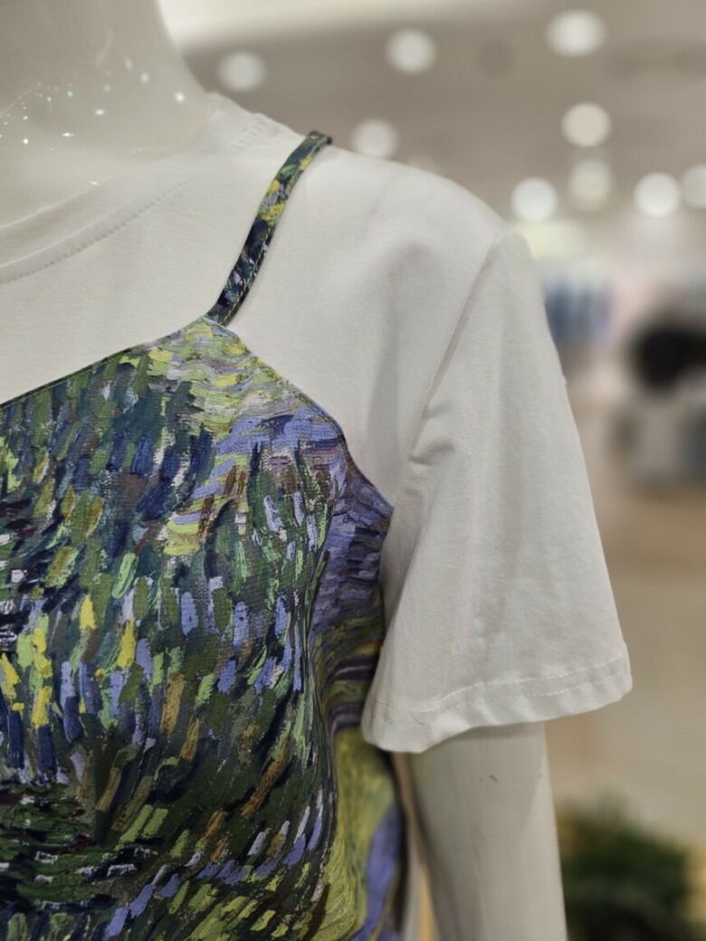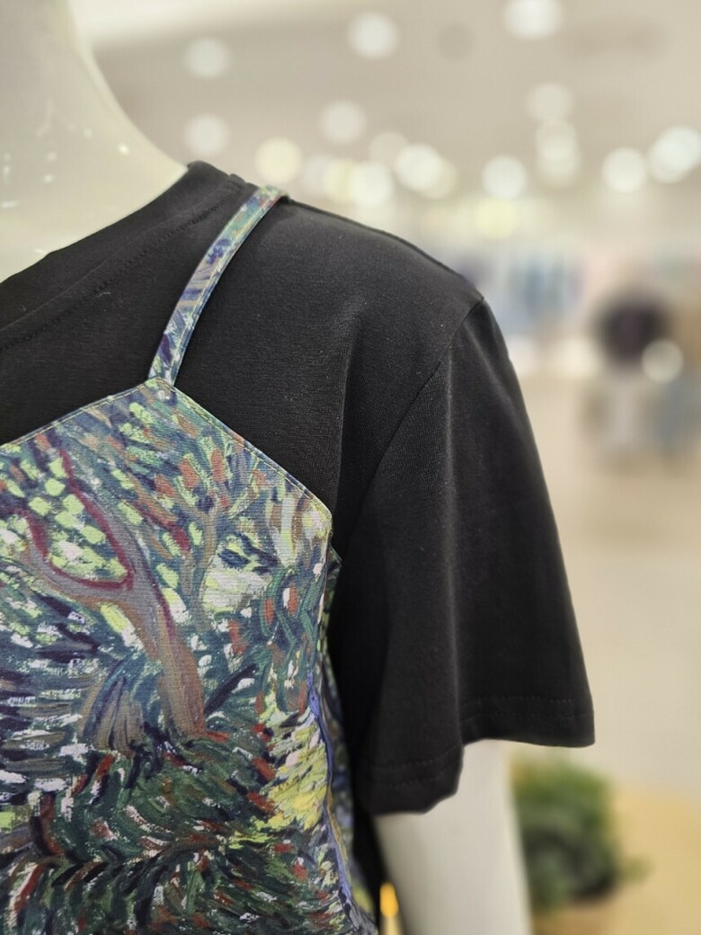 레이어드 프린트 티셔츠입니다.