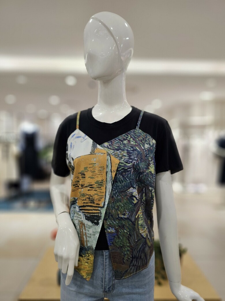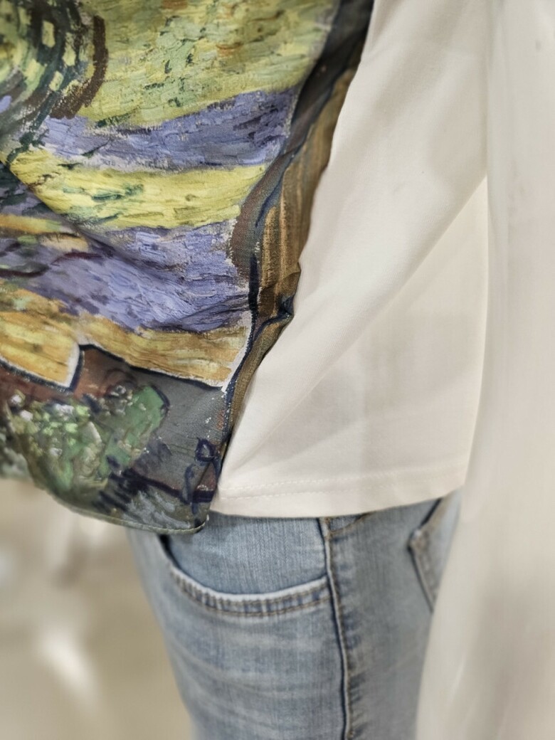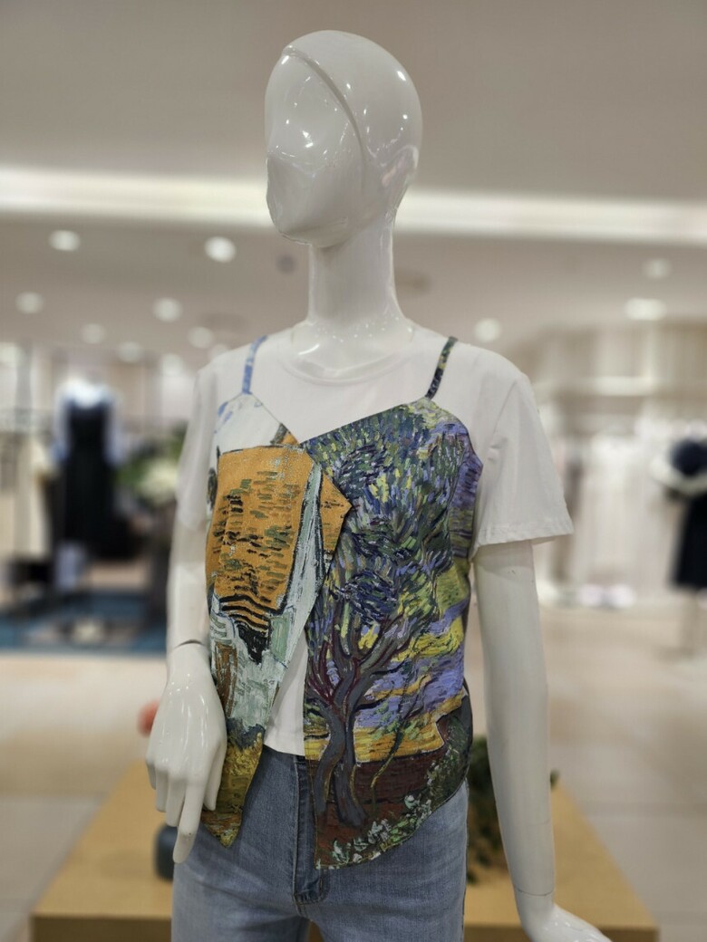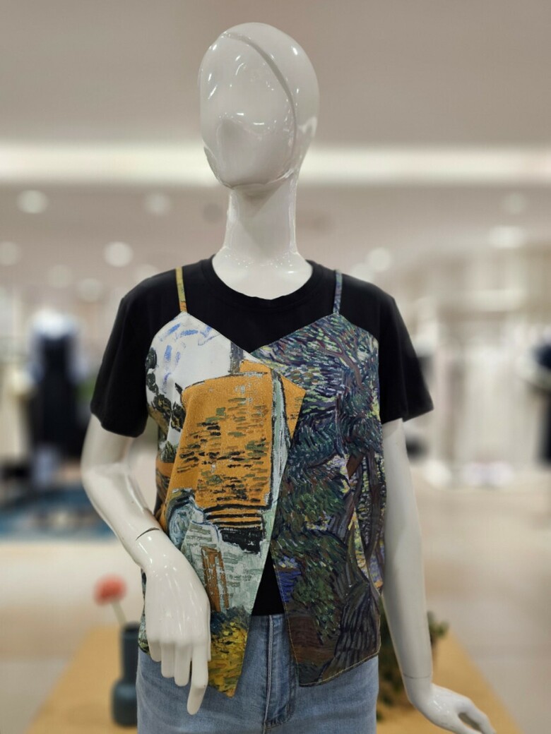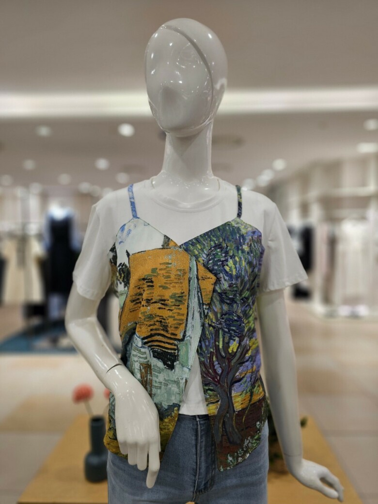 레이어드 프린트 티셔츠입니다.