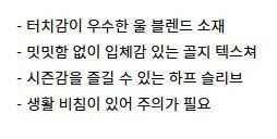 · 겉감 : 폴리에스터43 모31 아크릴26