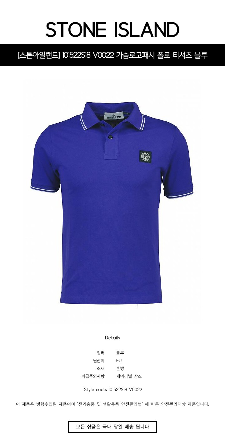 [명품] 101522S18 V0022 가슴로고패치 폴로 티셔츠 블루 남성 티셔츠 /