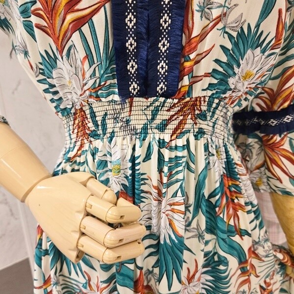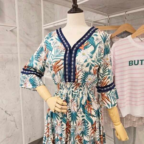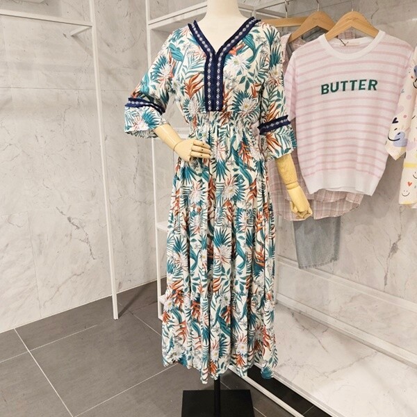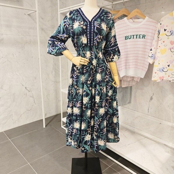 F5BOP019A_허리 밴딩 브이넥 원피스