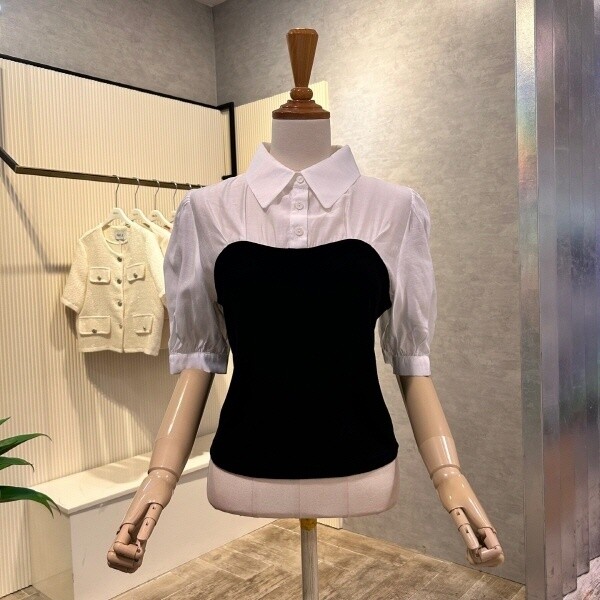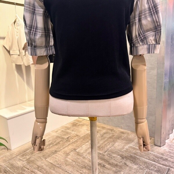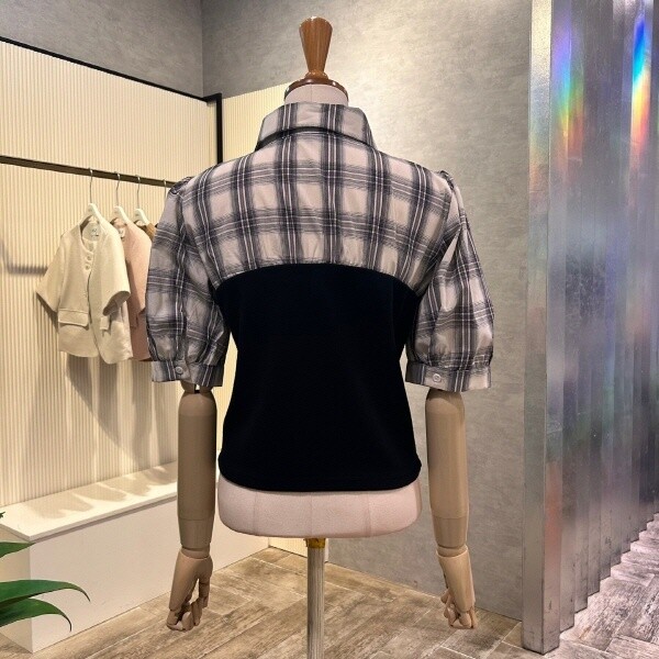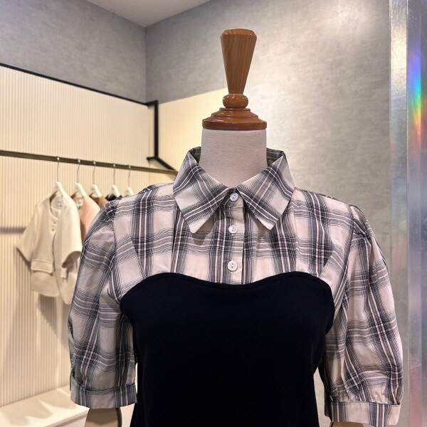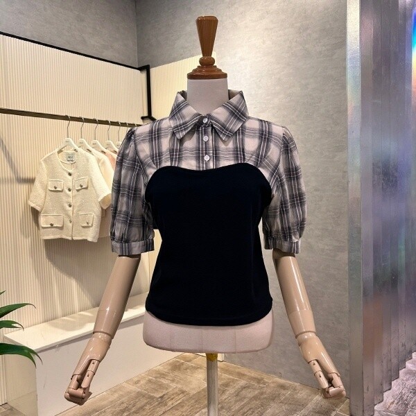 2025년 s/s?신상?체크 니트 레이어드 블라우스 입니다. 캐쥬얼 하면서 세련된 디자인이 포인트 아이템 입니다.?