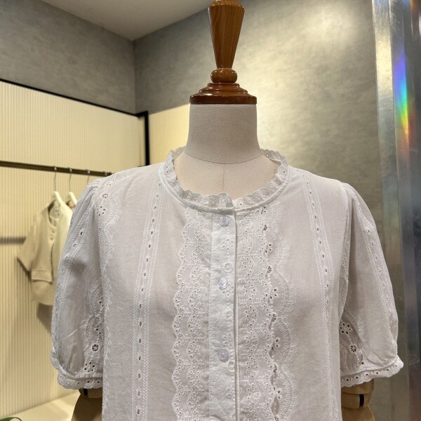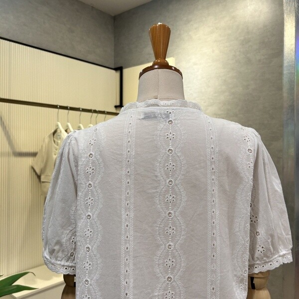 2025년 s/s?신상?자수 프릴 블라우스 입니다.