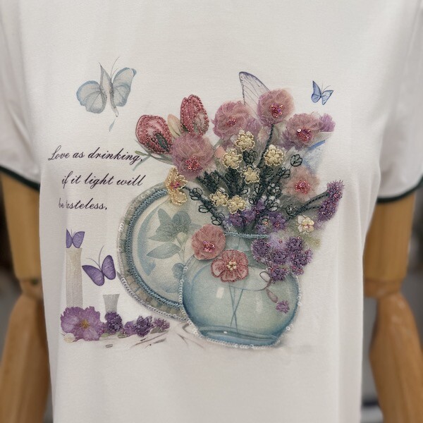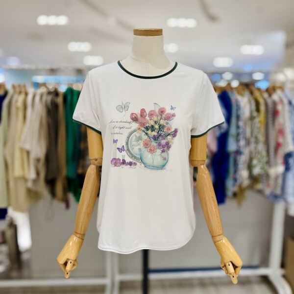 A25TS5259_유리꽃 배색 반팔티셔츠