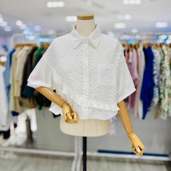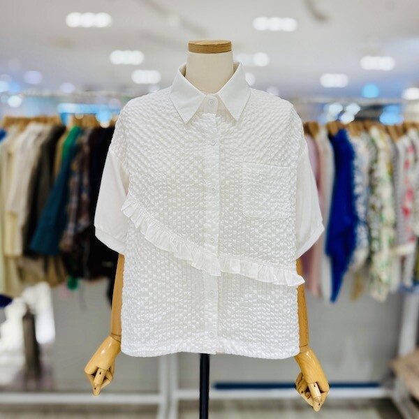 A25SH5219_사선 프릴 엠보싱 셔츠