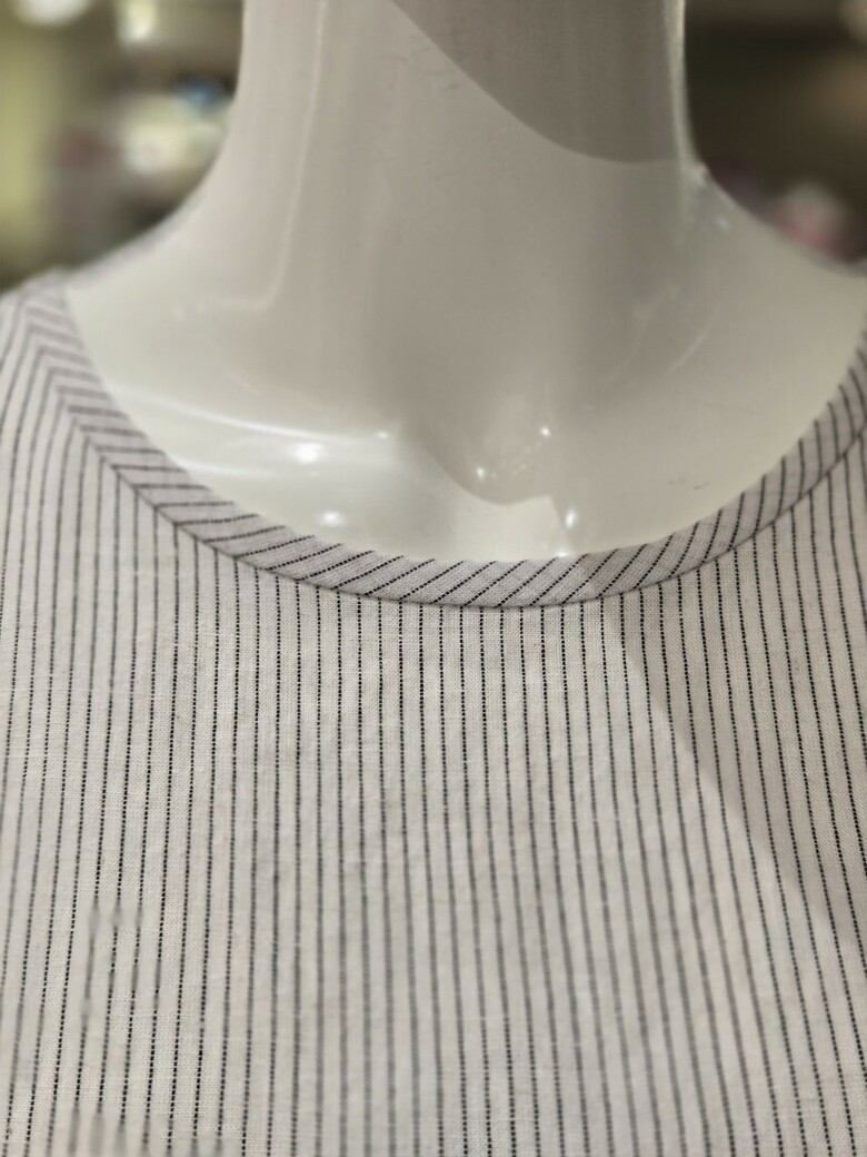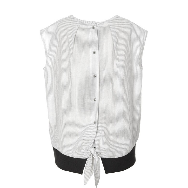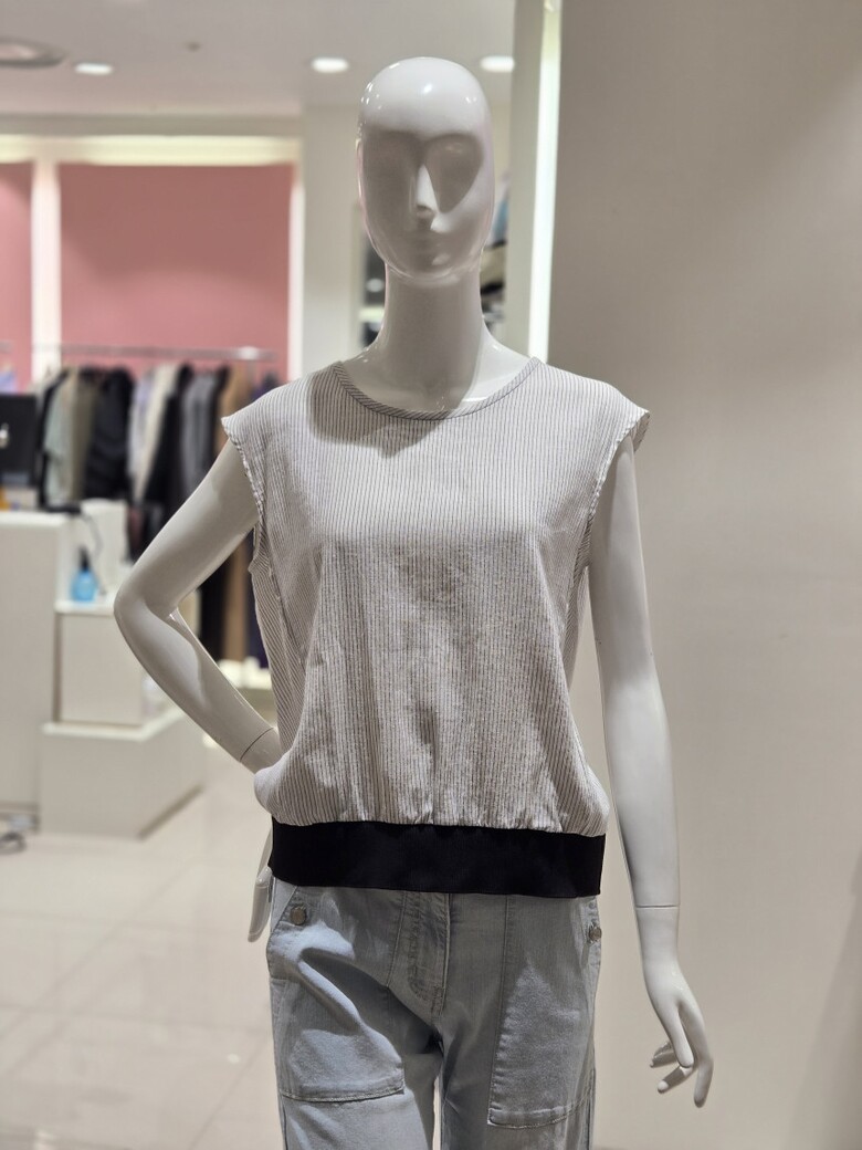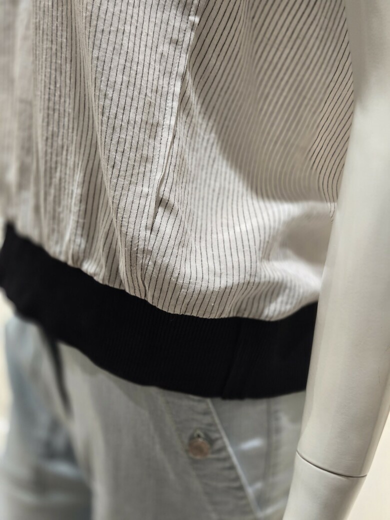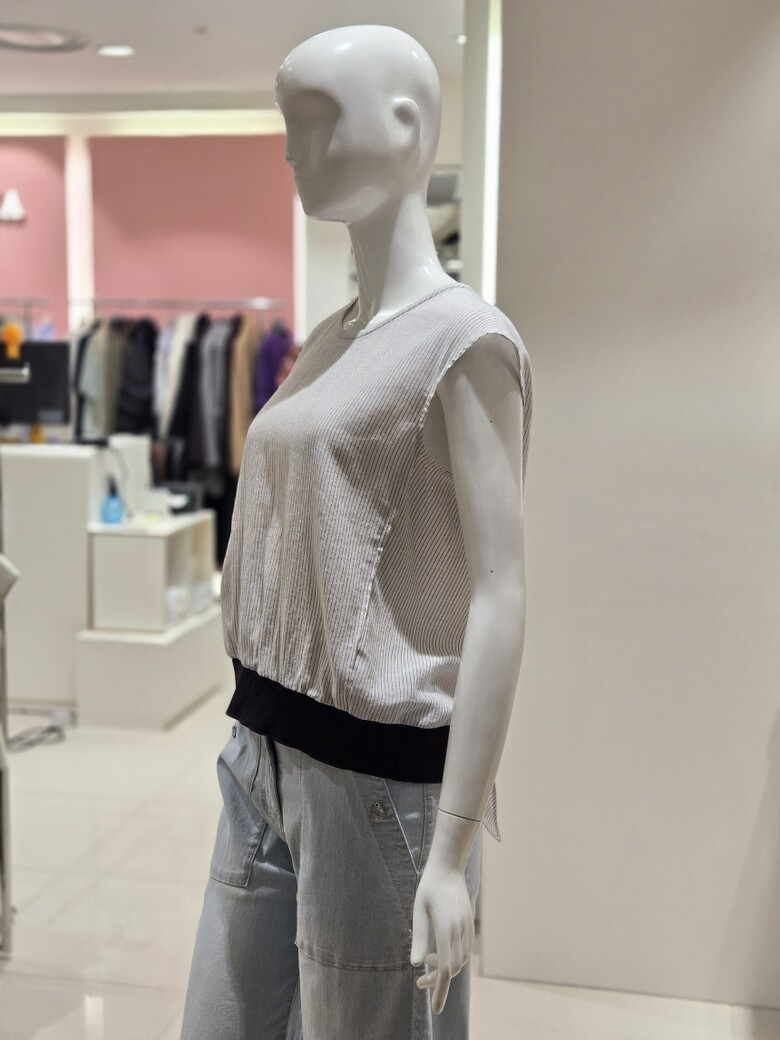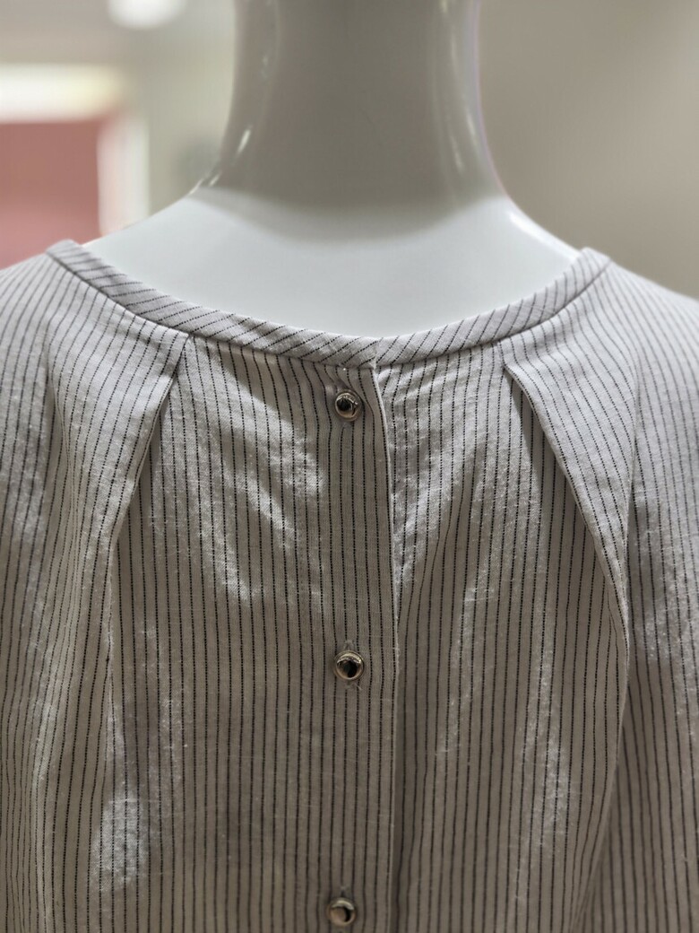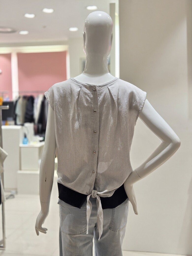 라운드넥 스트라이프 뒷슬릿 블라우스 256MB56