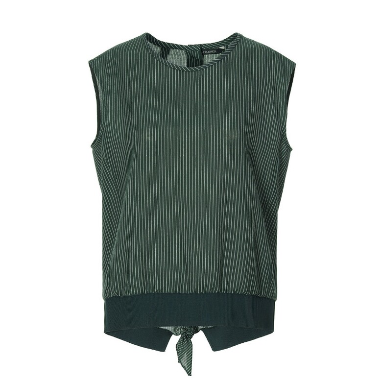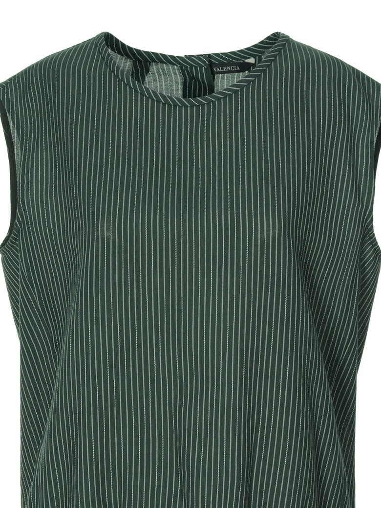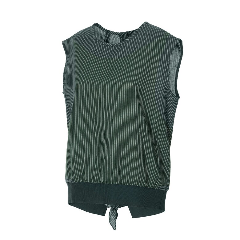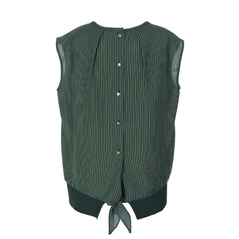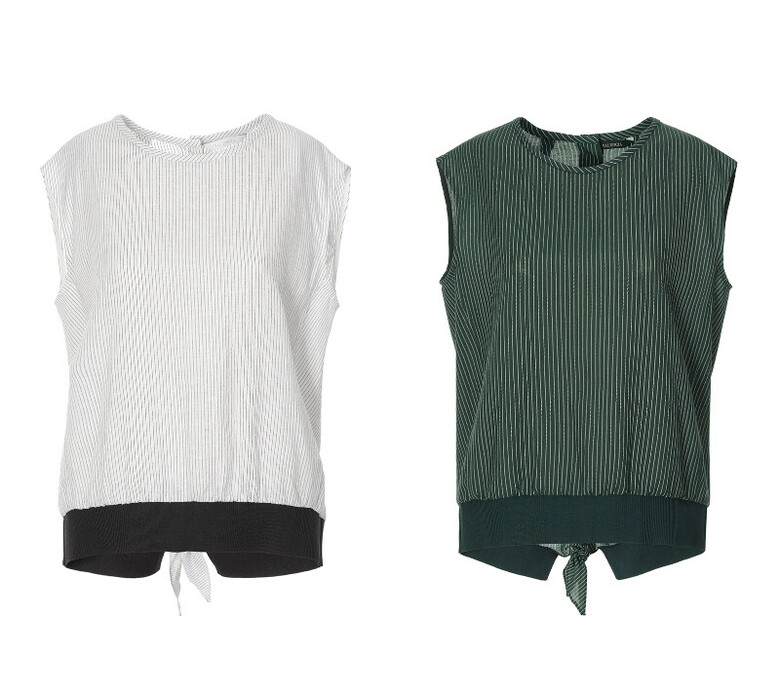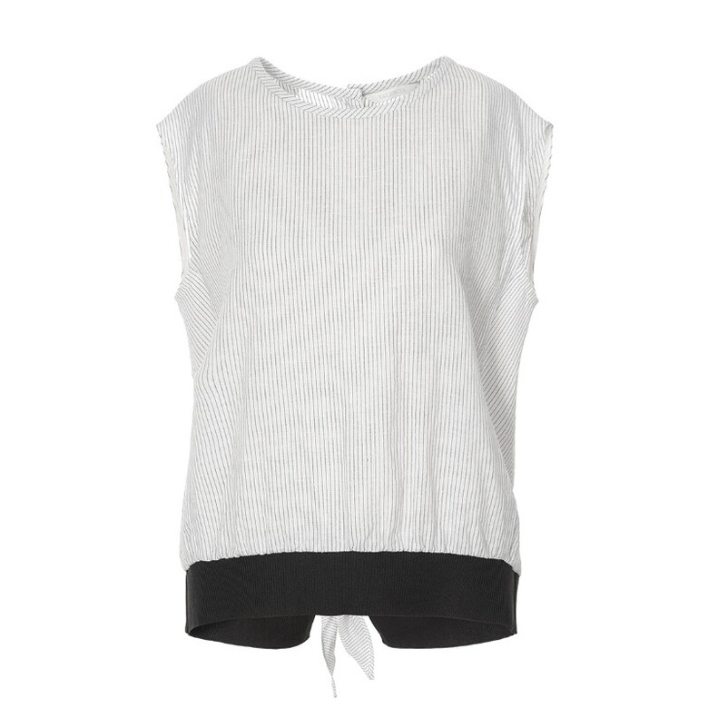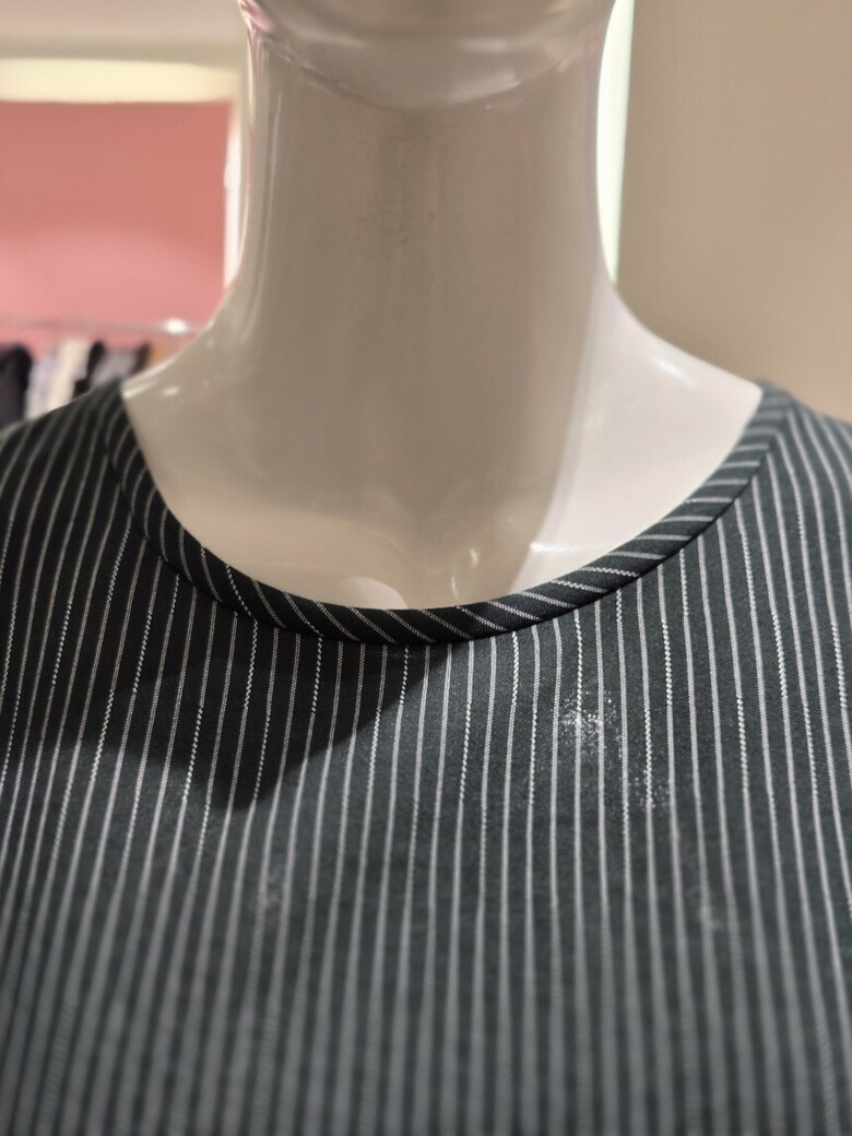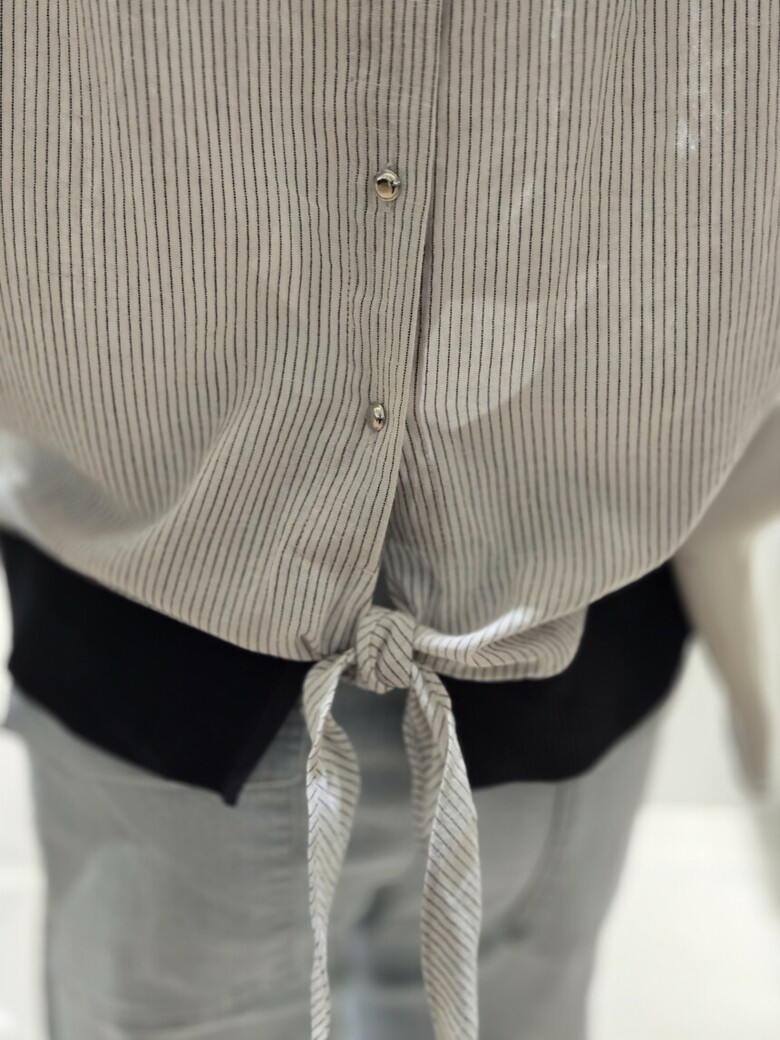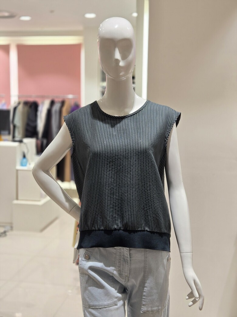 라운드넥 스트라이프 뒷슬릿 블라우스 256MB56