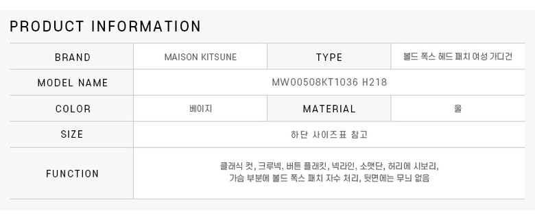 - #리본즈코리아 #MW00508KT1036H218 #[명품] #메종키츠네 #MW00508KT1036 #H218 #볼드 #폭스 #헤드 #패치 #여성 #가디건 #의류 #니트/가디건