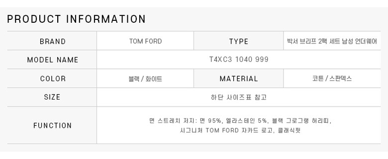 [명품] 톰포드 T4XC3 1040 999 박서 브리프 2팩 세트 남성 언더웨어