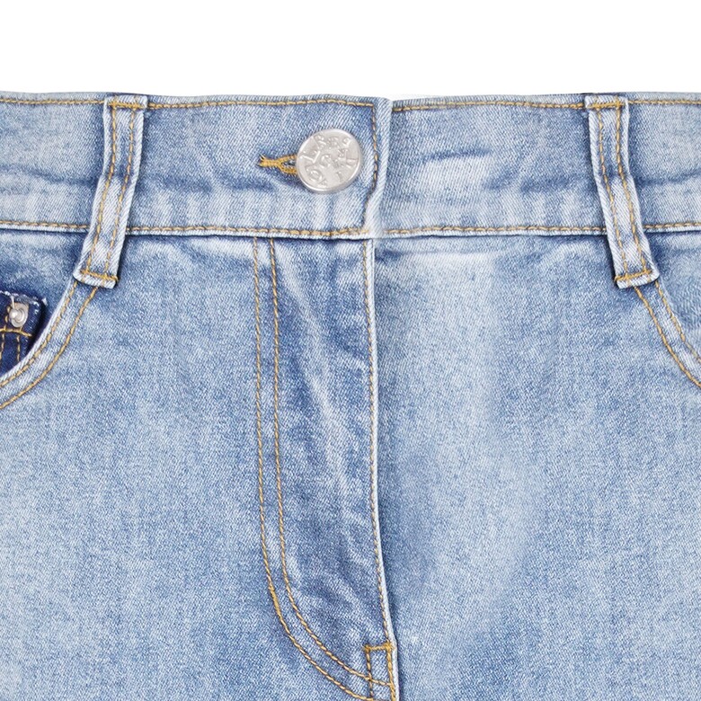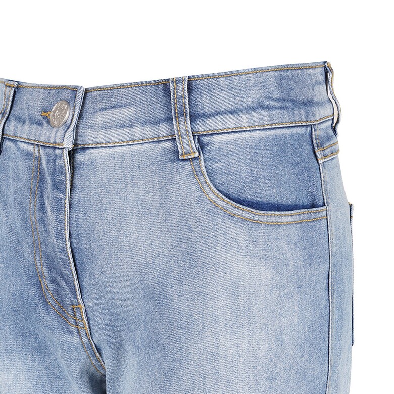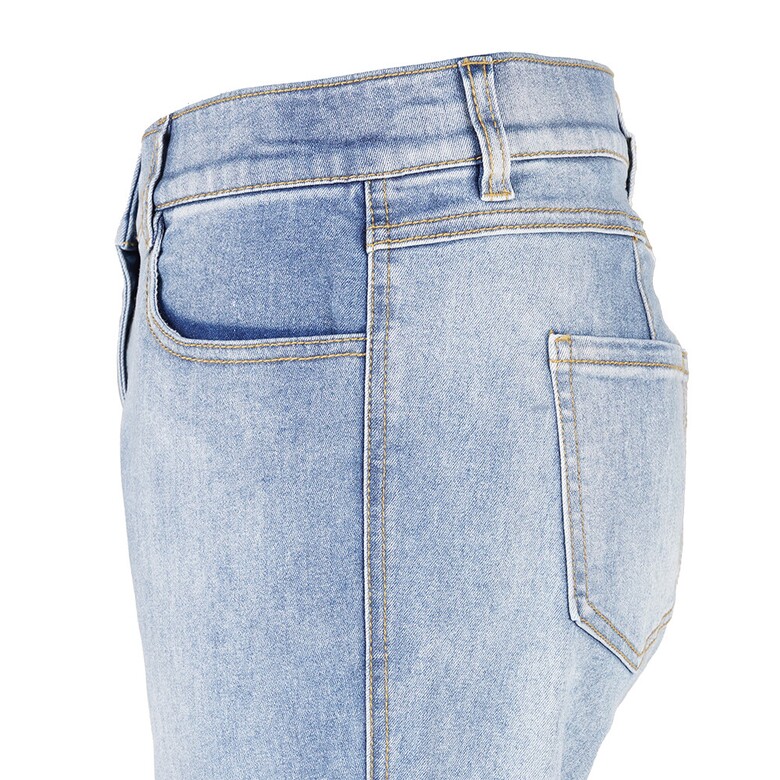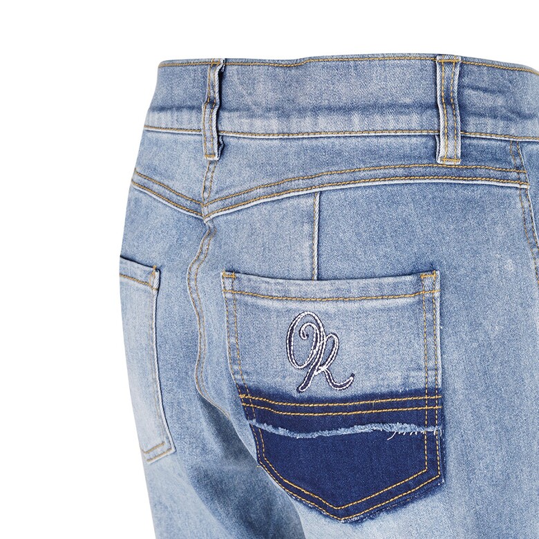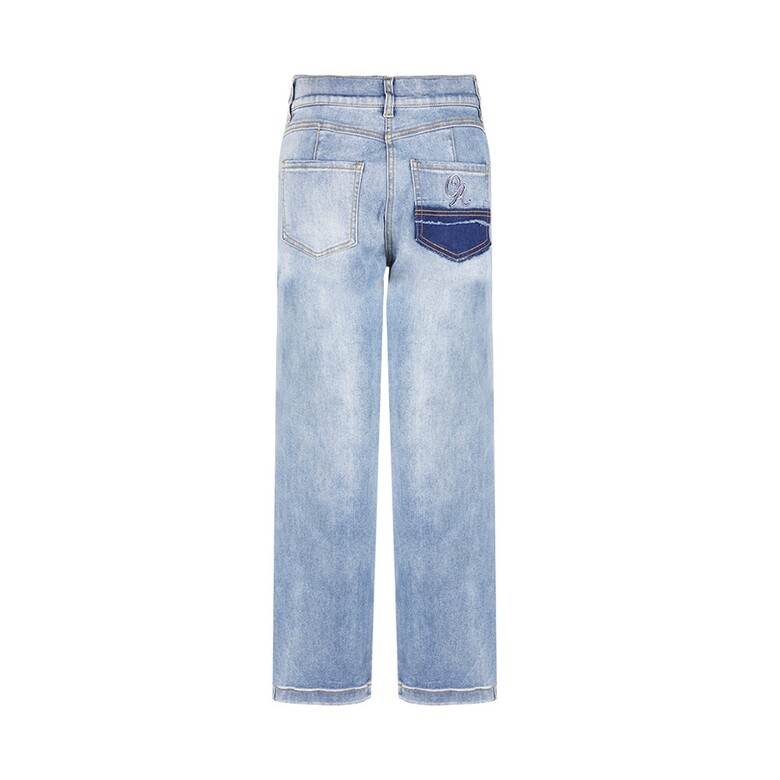 아이스진 데님입니다. 코인 포켓과 뒤판 워싱 배색 컬러로 포인트를 주었으며 뒤 포켓에 자수로 풍성한 디테일의 아이템입니다. 세련된 일자핏으로 다양한 상의와 코디하여 연출하기 좋습니다.