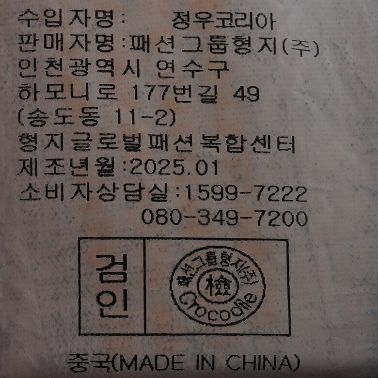 | 1. 제품 소재 (섬유의 조성 또는 혼용률을 백분율로 표시, 기능성인 경우 성적서 또는 허가서) | 상품상세참조 |