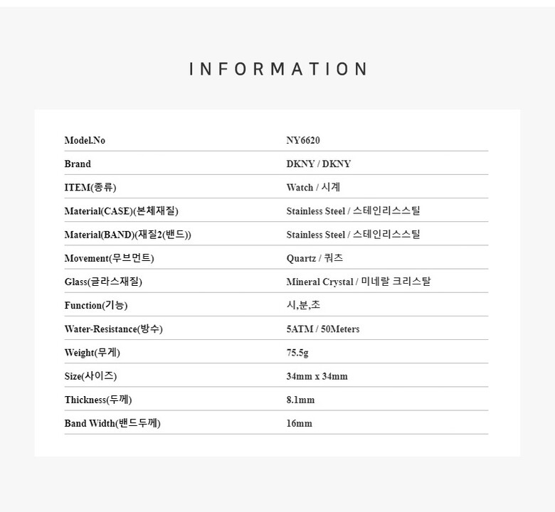 | 1. 소재 / 순도 / 밴드재질 | 실버/ 케이스 - 스테인리스스틸 / 밴드 - 스테인리스스틸 |