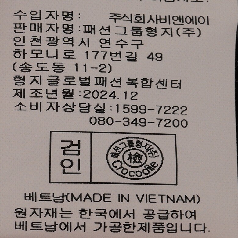 | 1. 제품 소재 (섬유의 조성 또는 혼용률을 백분율로 표시, 기능성인 경우 성적서 또는 허가서) | 상품상세참조 |