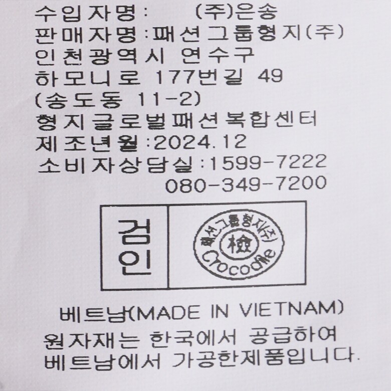 | 1. 제품 소재 (섬유의 조성 또는 혼용률을 백분율로 표시, 기능성인 경우 성적서 또는 허가서) | 상품상세참조 |