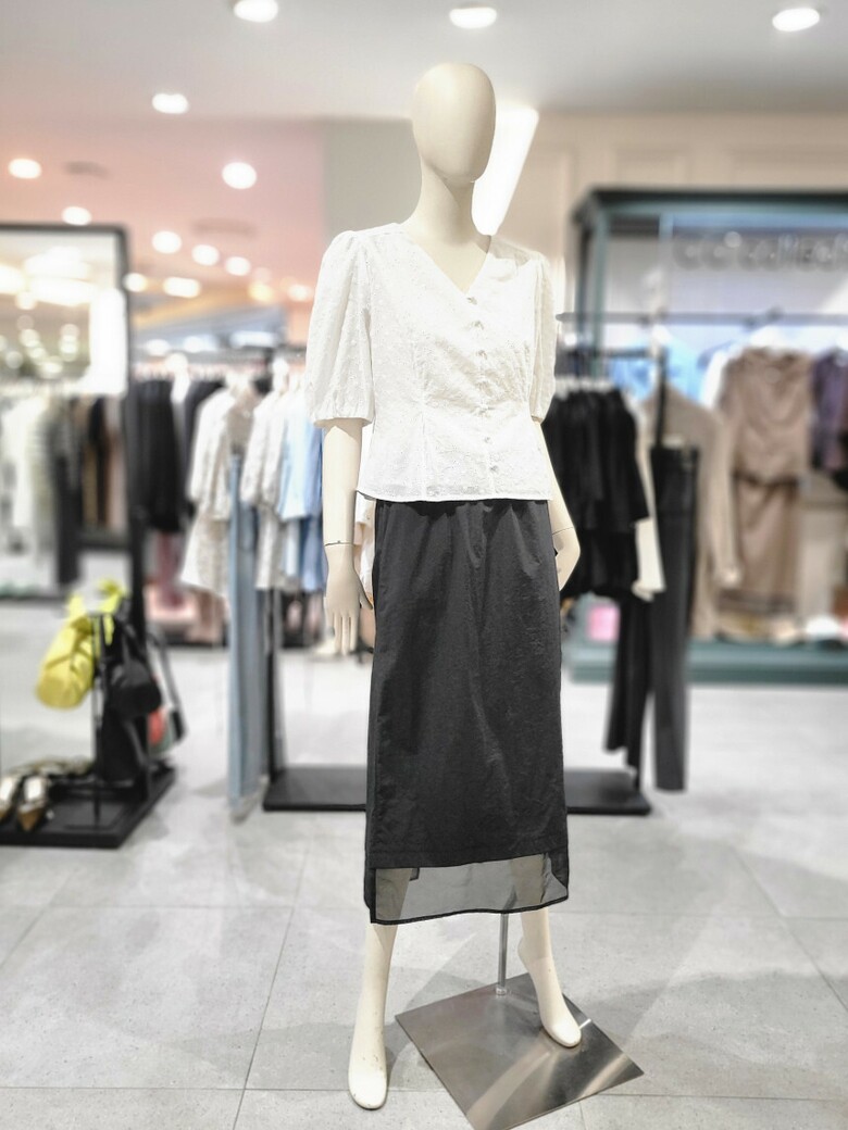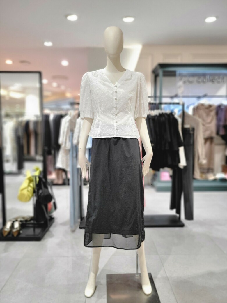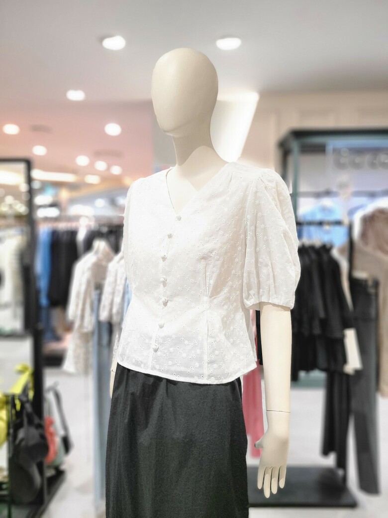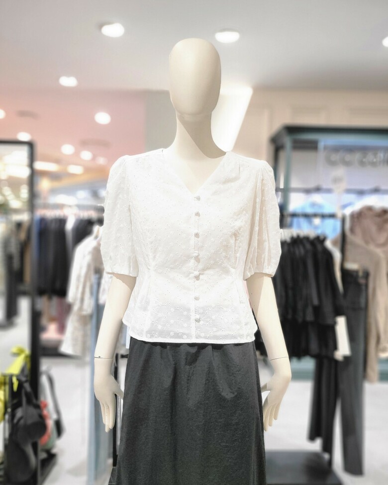 씨씨콜렉트 자수포인트 퍼프소매 블라우스 E252MSC147