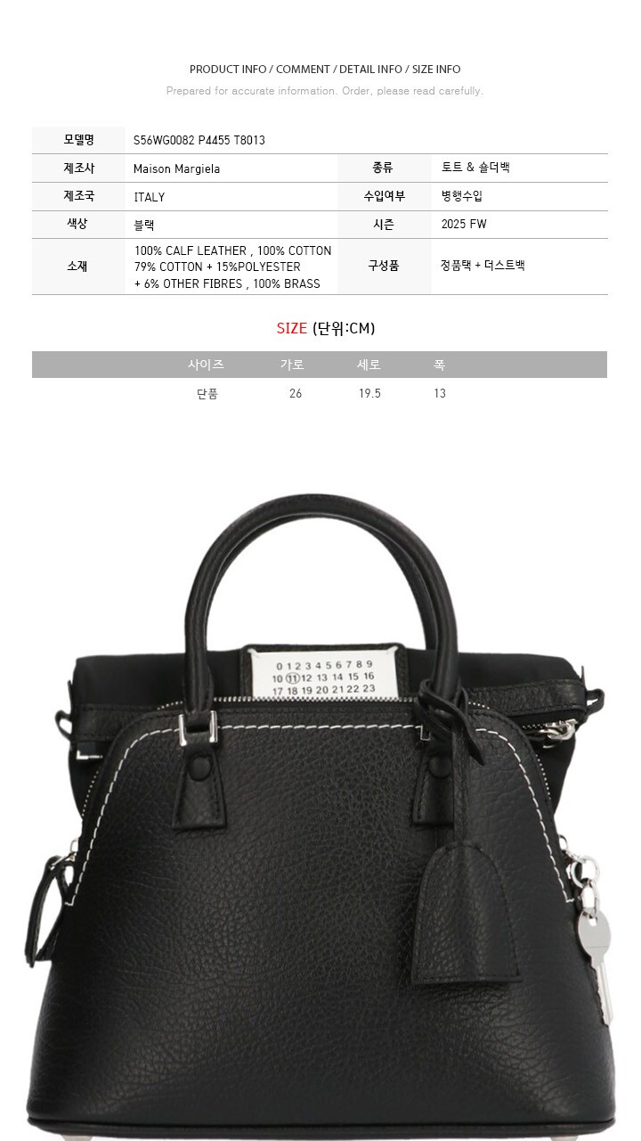 마르지엘라 25FW 5AC 미니 토트숄더백 블랙 S56WG0082 P4455 T8013