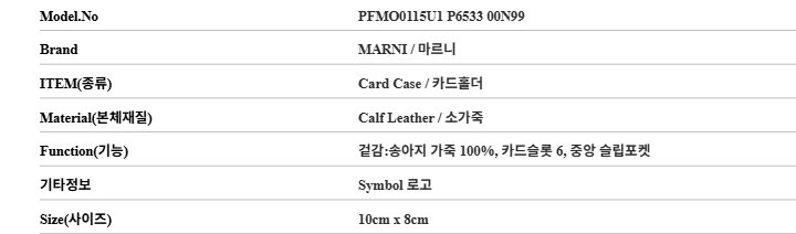 #리본즈코리아 #PFMO0115U1P653300N99 #[명품] #마르니 #PFMO0115U1 #P6533 #00N99 #Symbol #로고 #카드지갑 #여성 #지갑 #카드/명함지갑 #카드지갑홀더