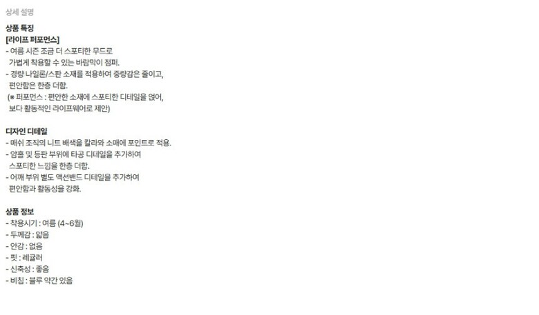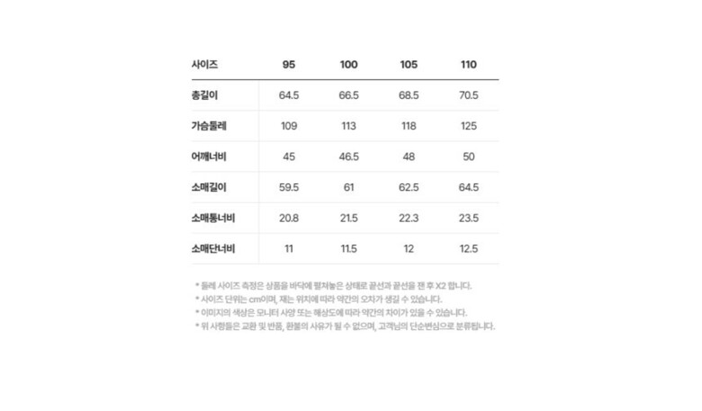 | 1. 제품 소재 (섬유의 조성 또는 혼용률을 백분율로 표시, 기능성인 경우 성적서 또는 허가서) | 상품상세참조 |