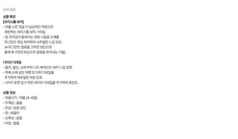 | 6. 세탁방법 및 취급시 주의사항 | 상품상세참조 |