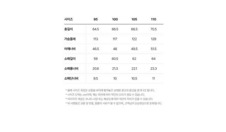 | 1. 제품 소재 (섬유의 조성 또는 혼용률을 백분율로 표시, 기능성인 경우 성적서 또는 허가서) | 상품상세참조 |