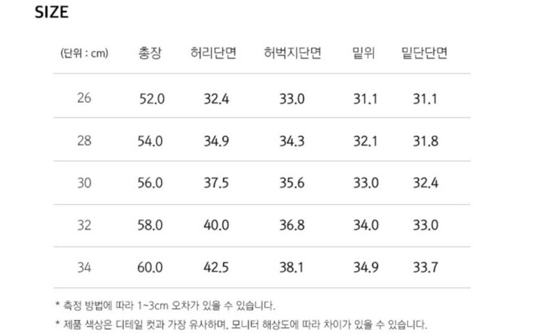 | 3. 치수 | 32,26,28,30,34 |