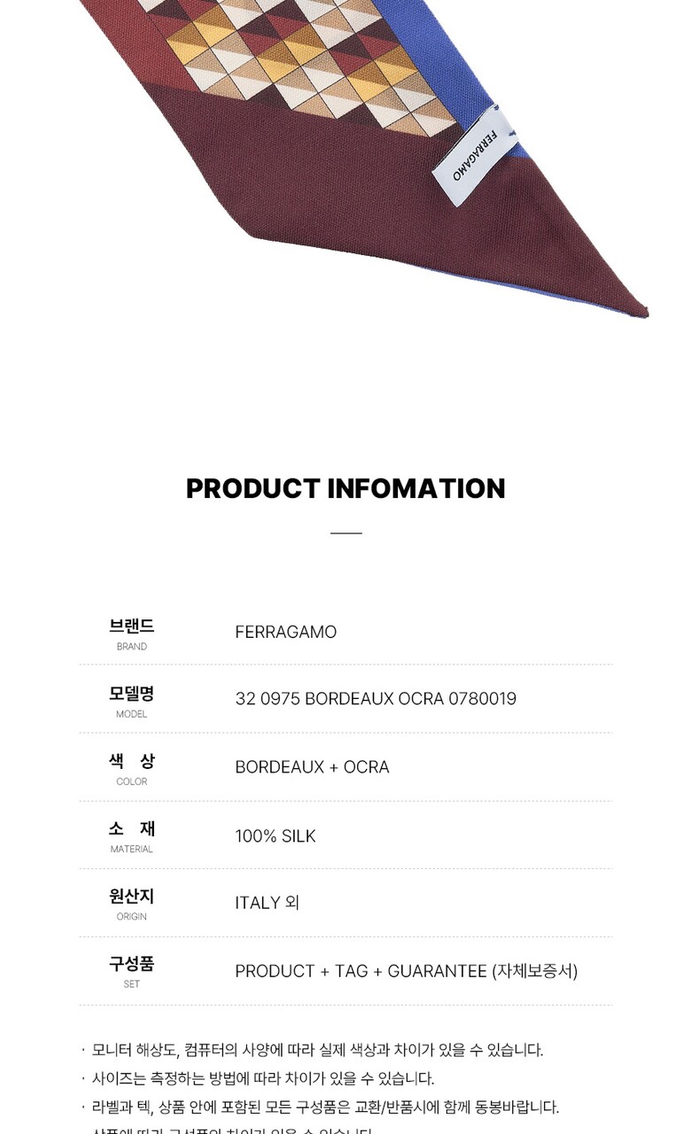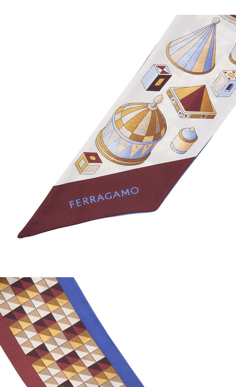(페라가모) 32 0975 BORDEAUX OCRA 0780019 SS25 여성 지오메트릭 스카프