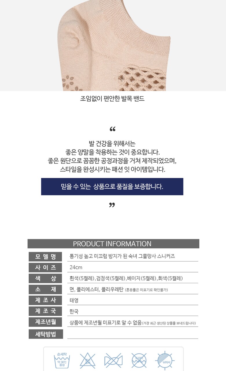 통기성 높고 미끄럼 방지가 된 숙녀 발등 그물망사 스니커즈0019sz