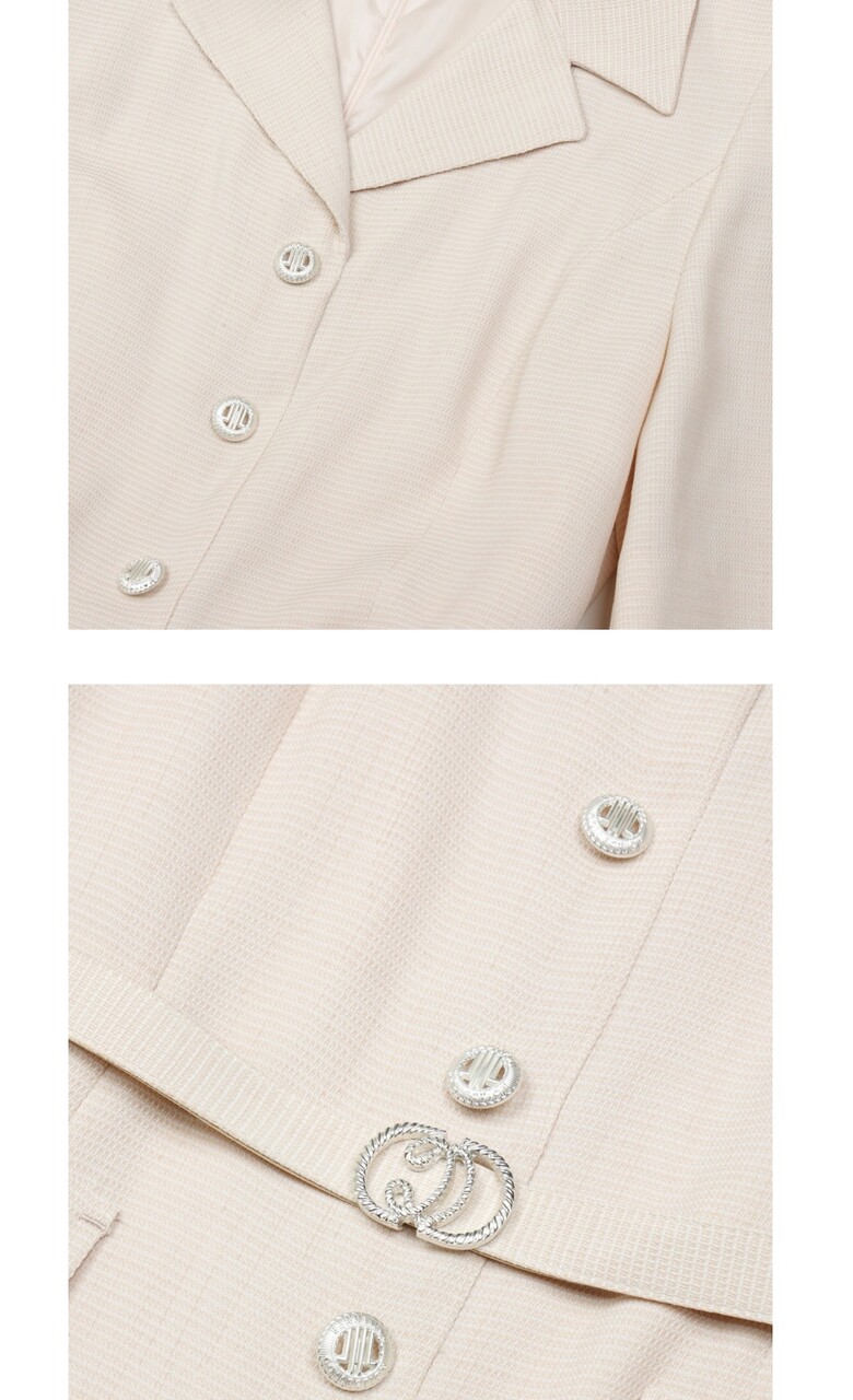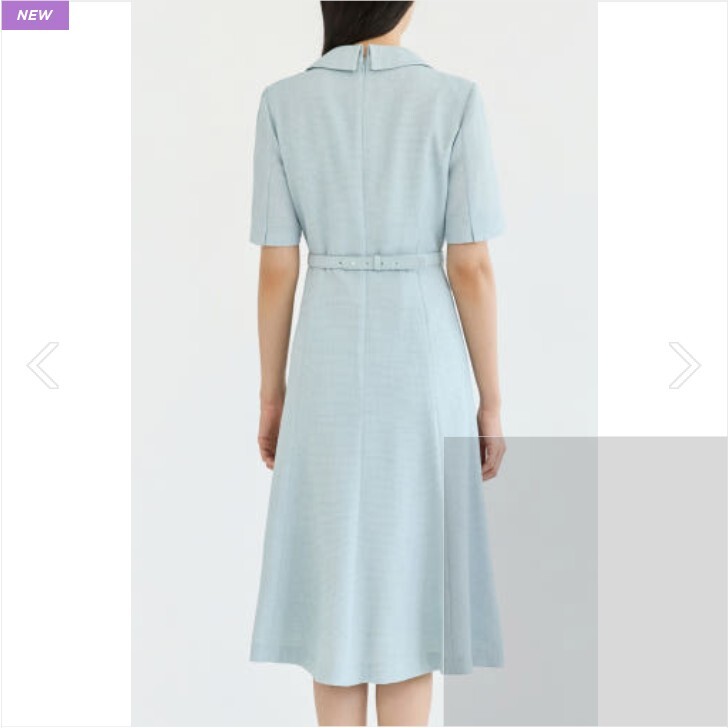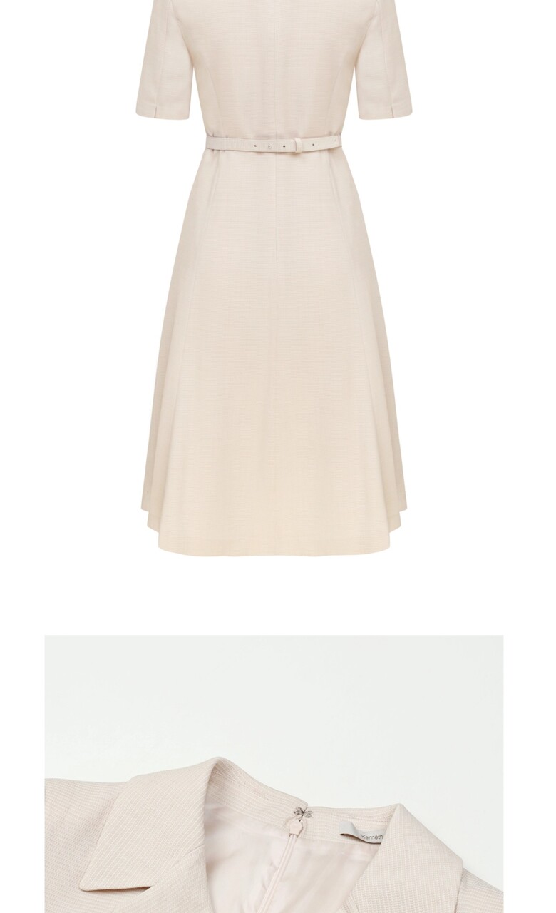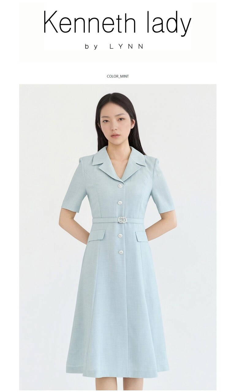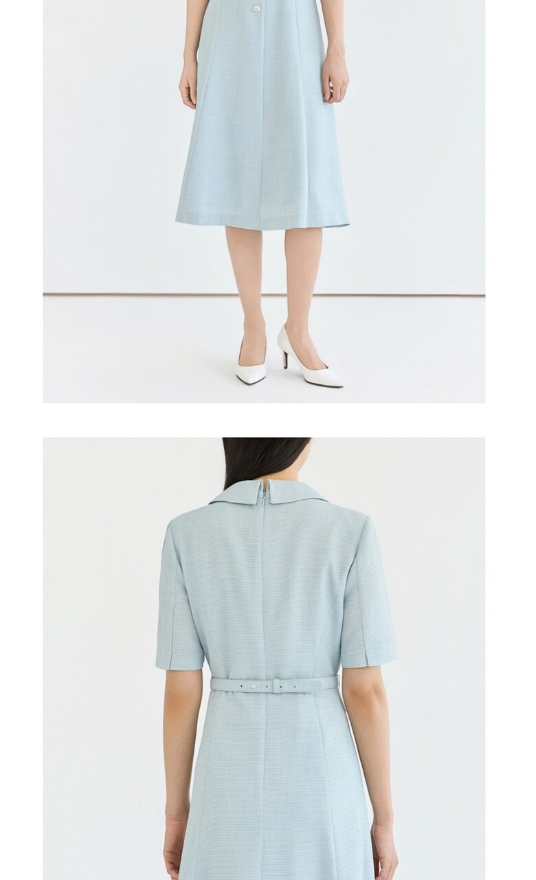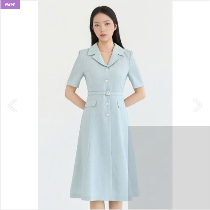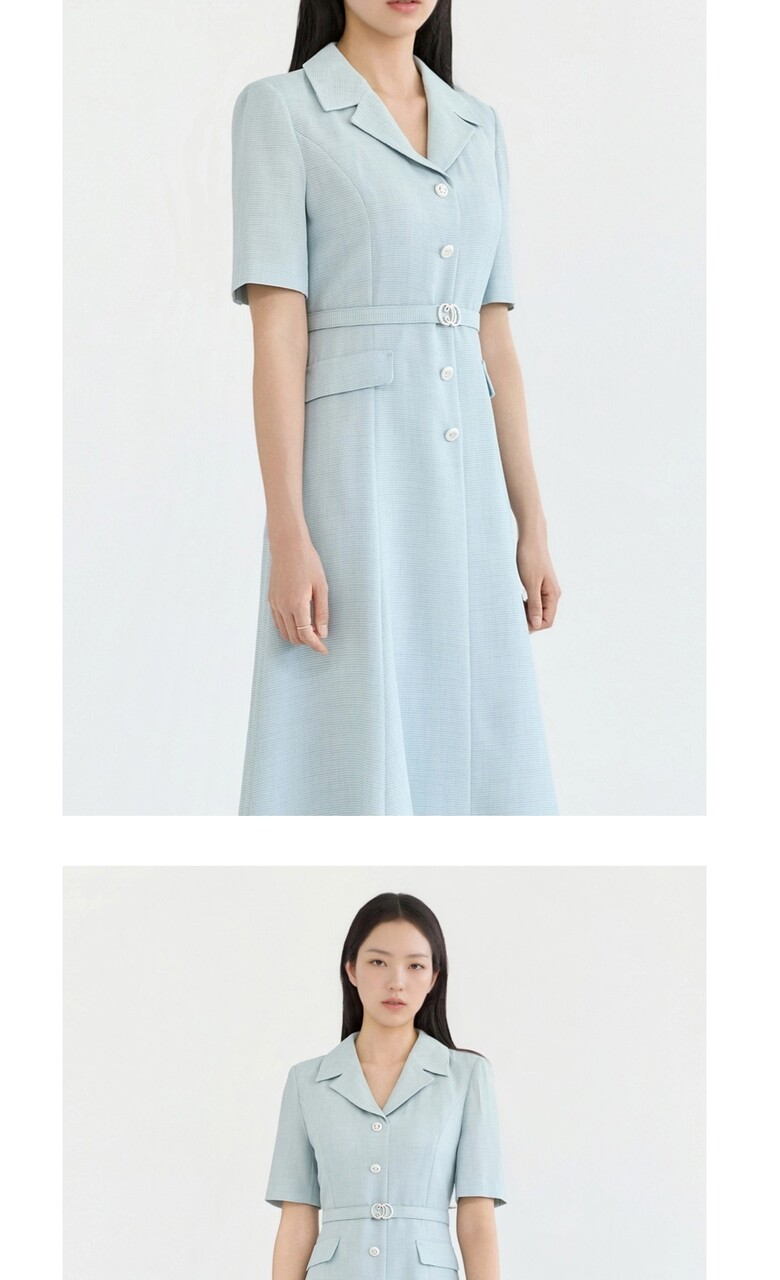 오픈카라와 실버 버튼이 매력적인 세미 A라인 원피스입니다.