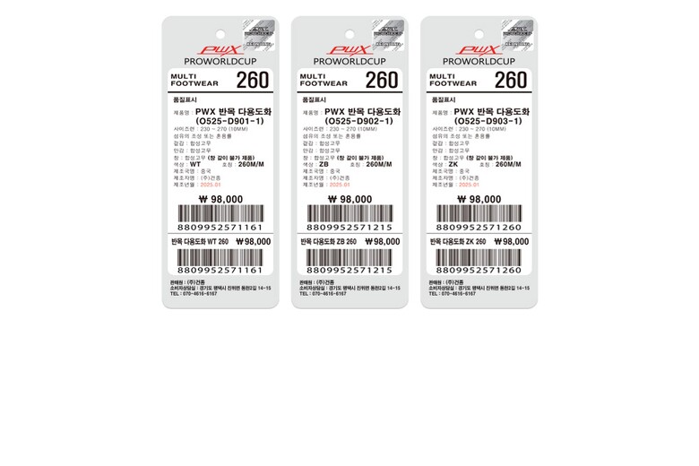 1. 제품 소재 (운동화인 경우에는 겉감, 안감을 구분하여 표시) | 겉감 합성고무 안감 합성고무 창 합성고무 |