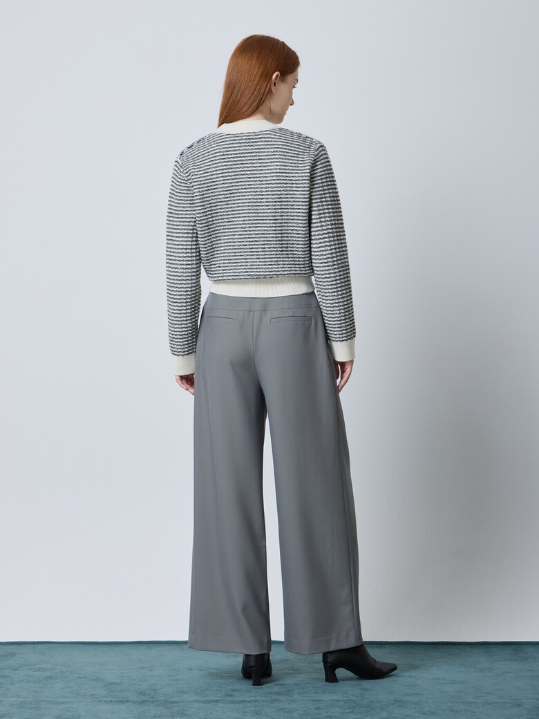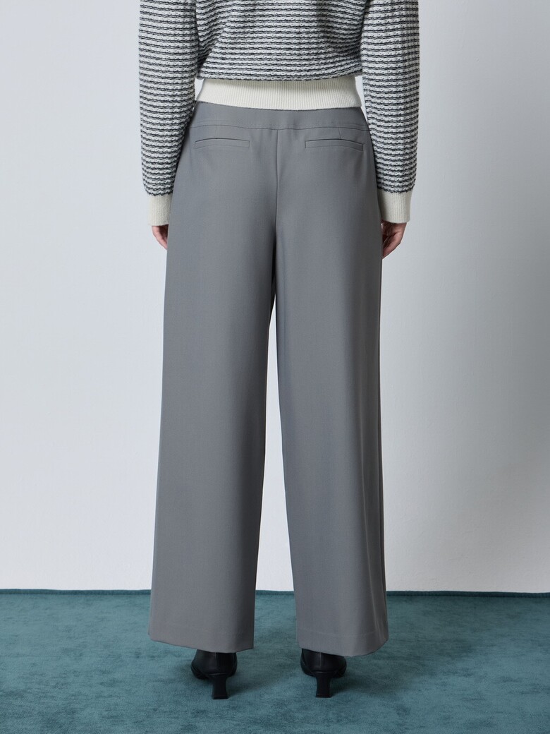 - 앞면에 유니크하게 투턱을 잡아 볼륨감을 준 와이드 실루엣의 팬츠입니다.