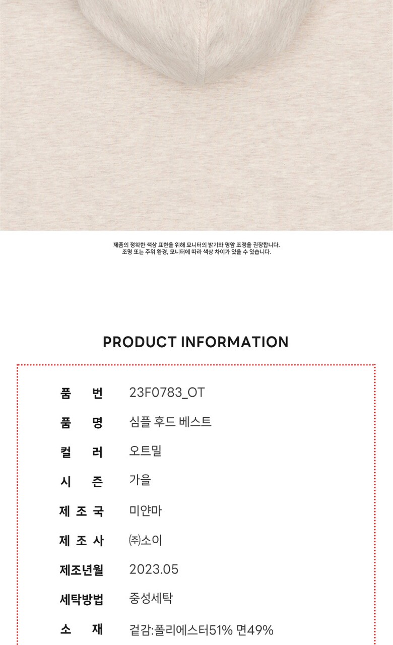 여아 심플 후드 베스트 23F0783_OT