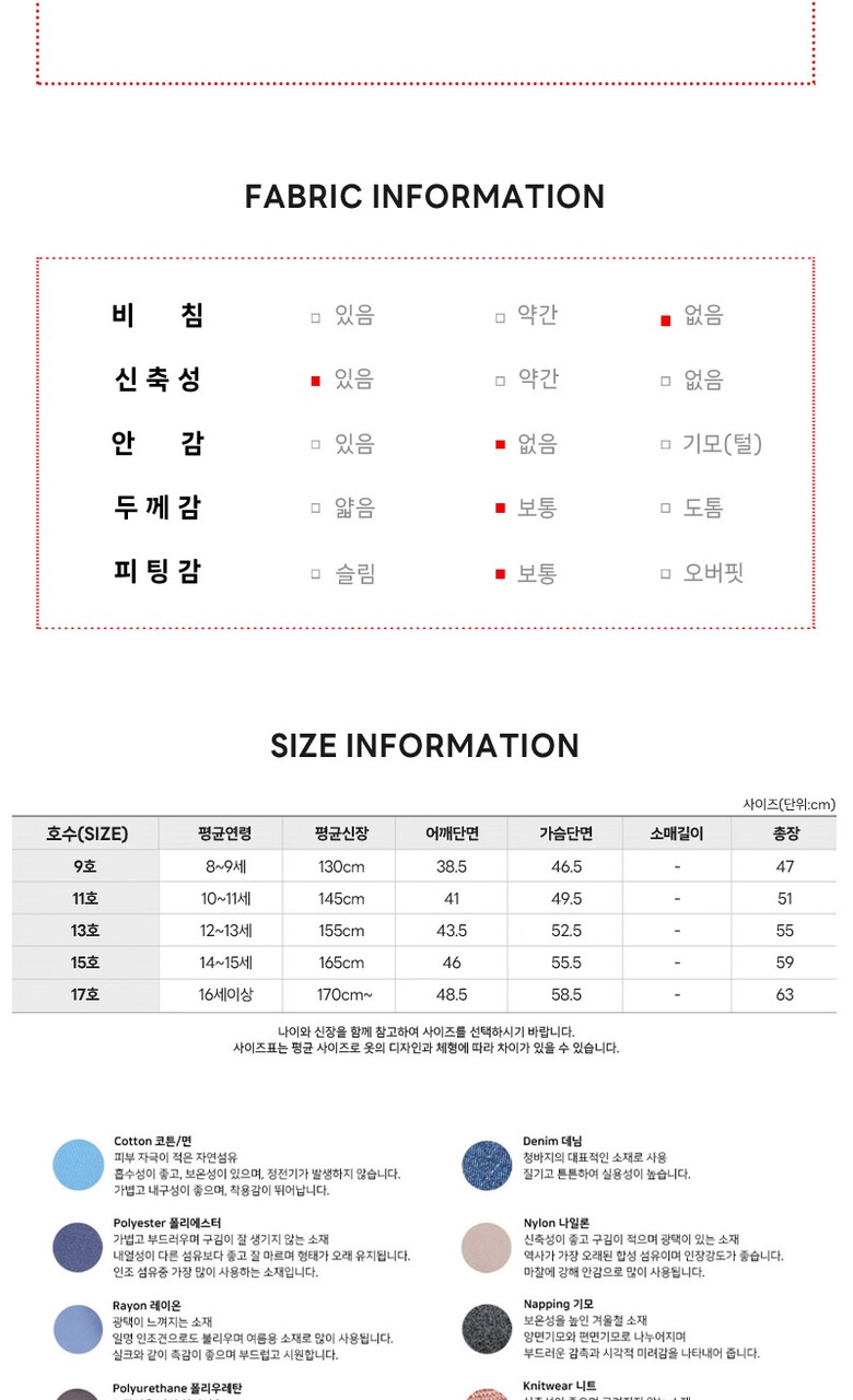 1. 제품 소재 (섬유의 조성 또는 혼용률을 백분율로 표시, 기능성인 경우 성적서 또는 허가서) | 겉감:폴리에스터51% 면49% |