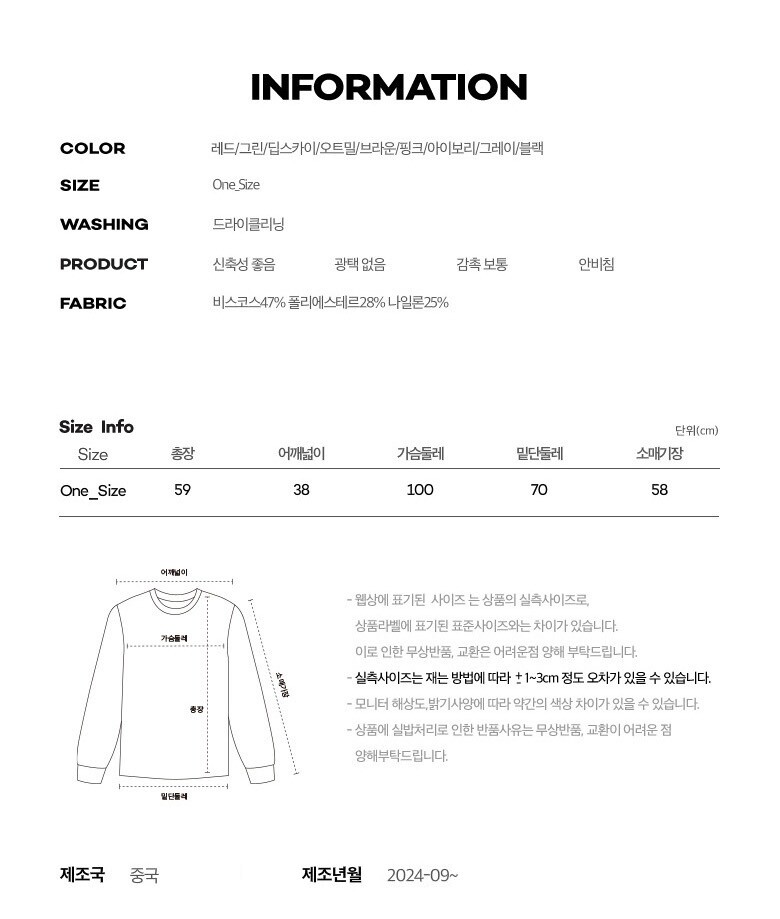 • 처음 배송된 상품상태와 다를 경우(세탁/착용 후 외출하신 경우) 반품이 불가합니다.