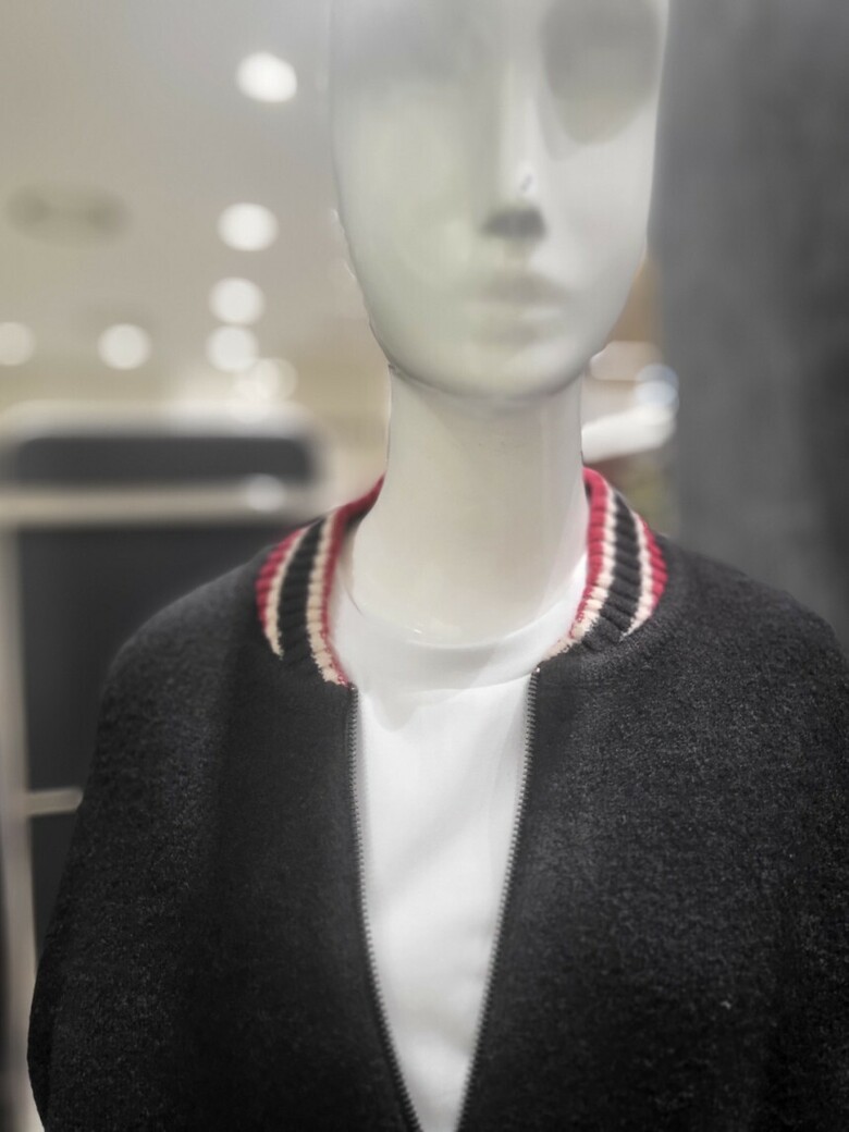넥 부분과 밑단 쪽에 배색을 주어 포인트를 줍니다.